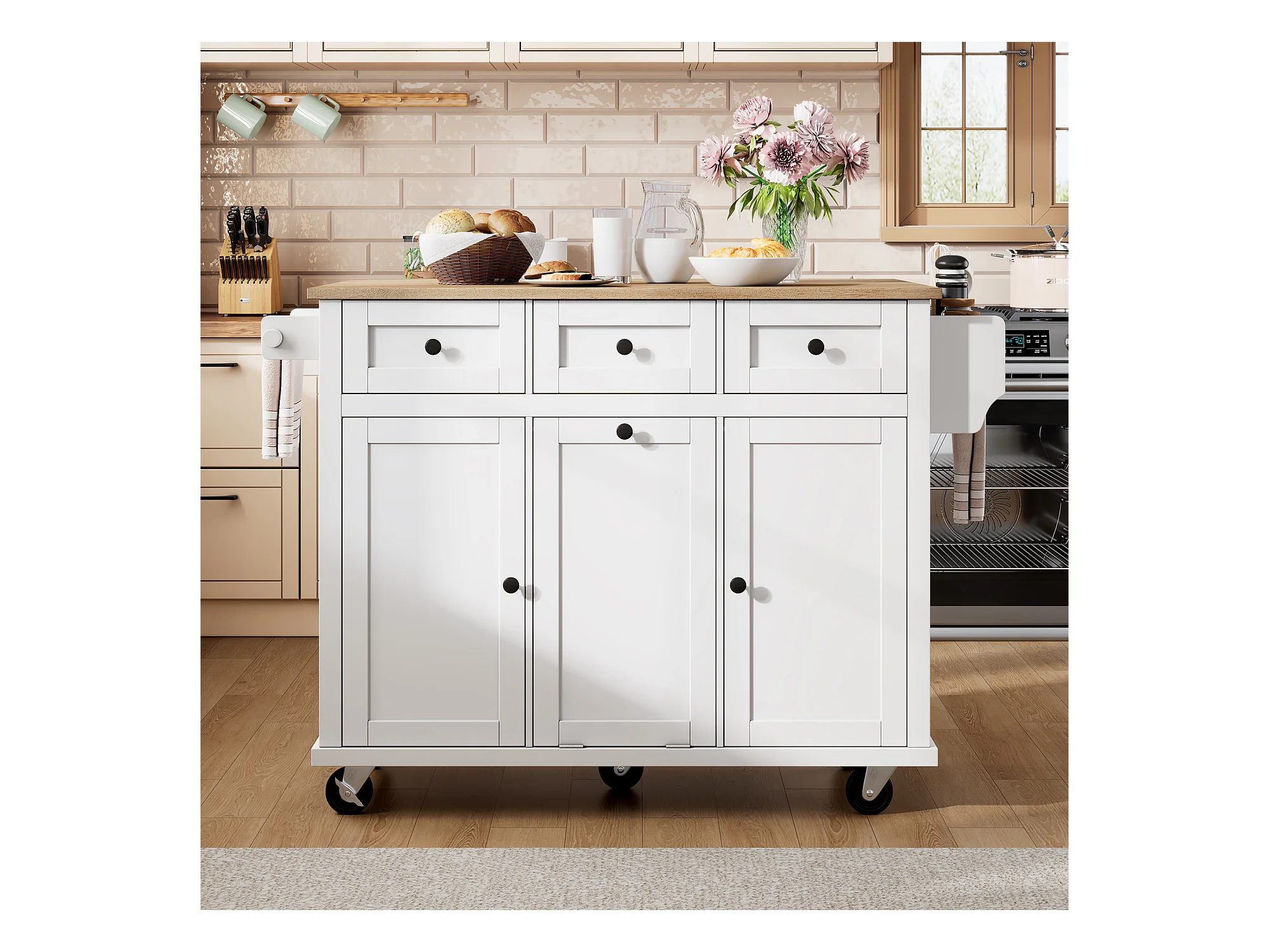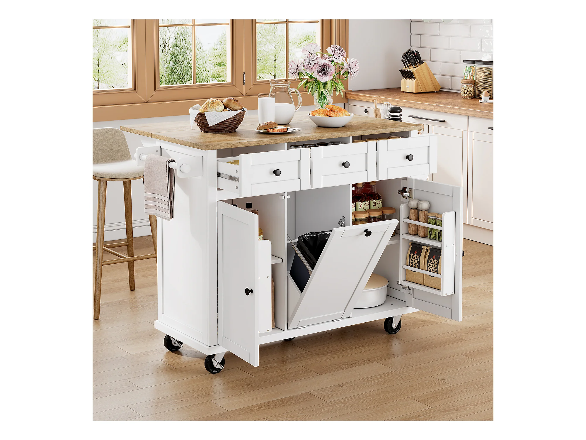 Desserte de cuisine blanc avec plan de travail extensible et tiroir - pour cuisine et salle à manger