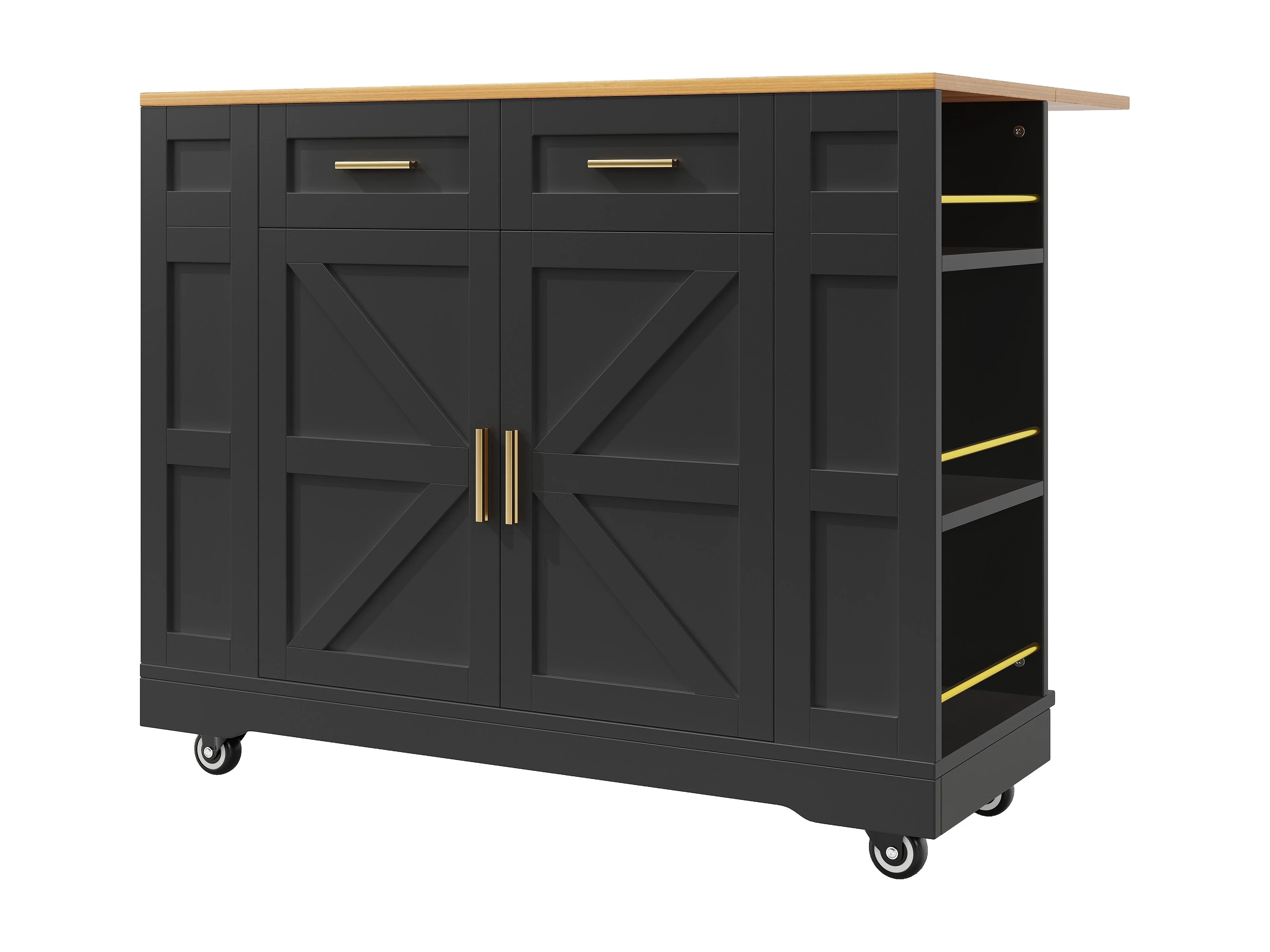 Desserte de cuisine 128x(46-71)x93 cm 2 portes et 2 tiroirs Îlot de cuisine avec plateau extensible - noir