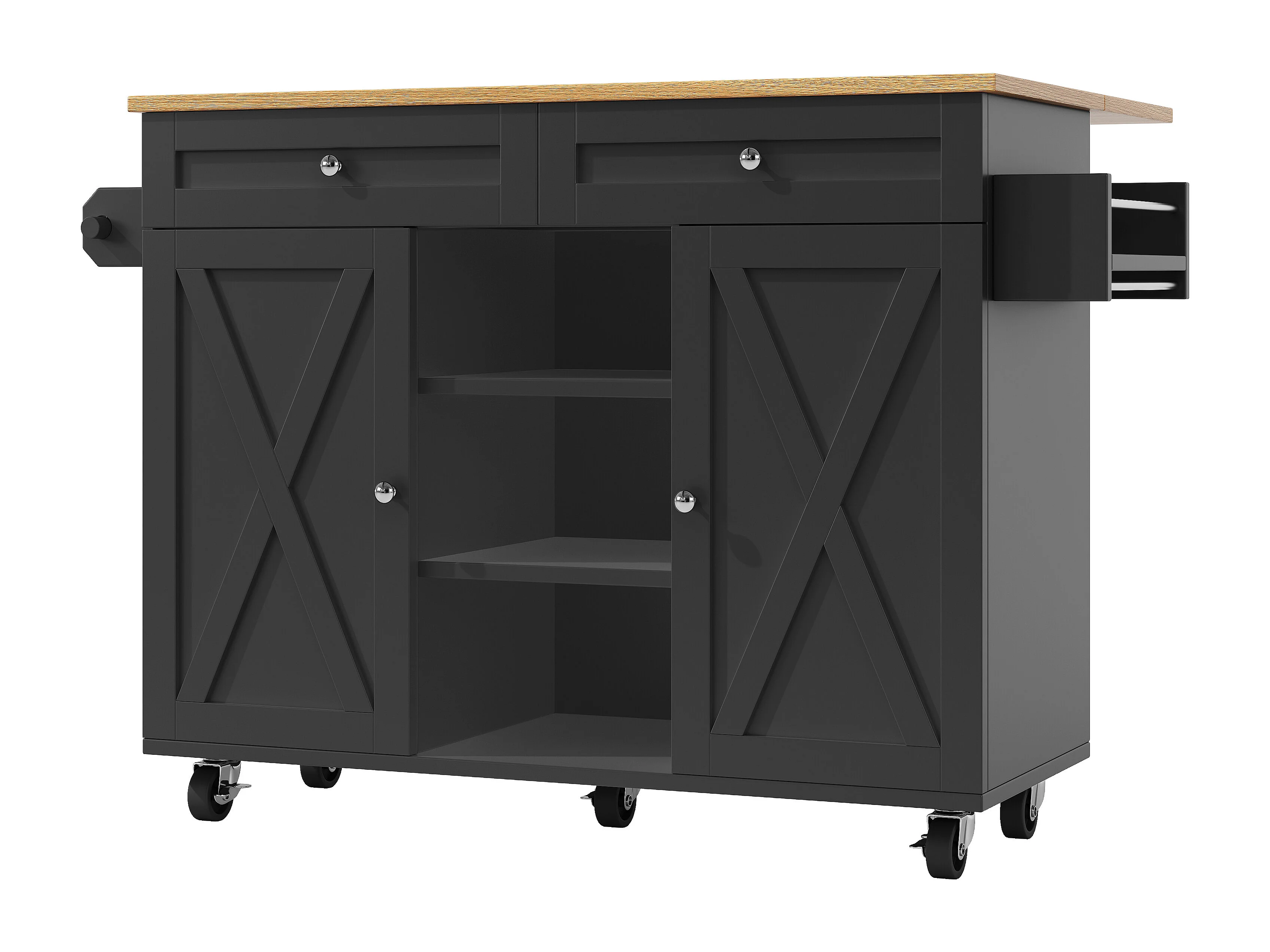 Desserte de cuisine 128x(46-71)x93 cm 2 portes et 2 tiroirs Îlot de cuisine avec plateau extensible - noir