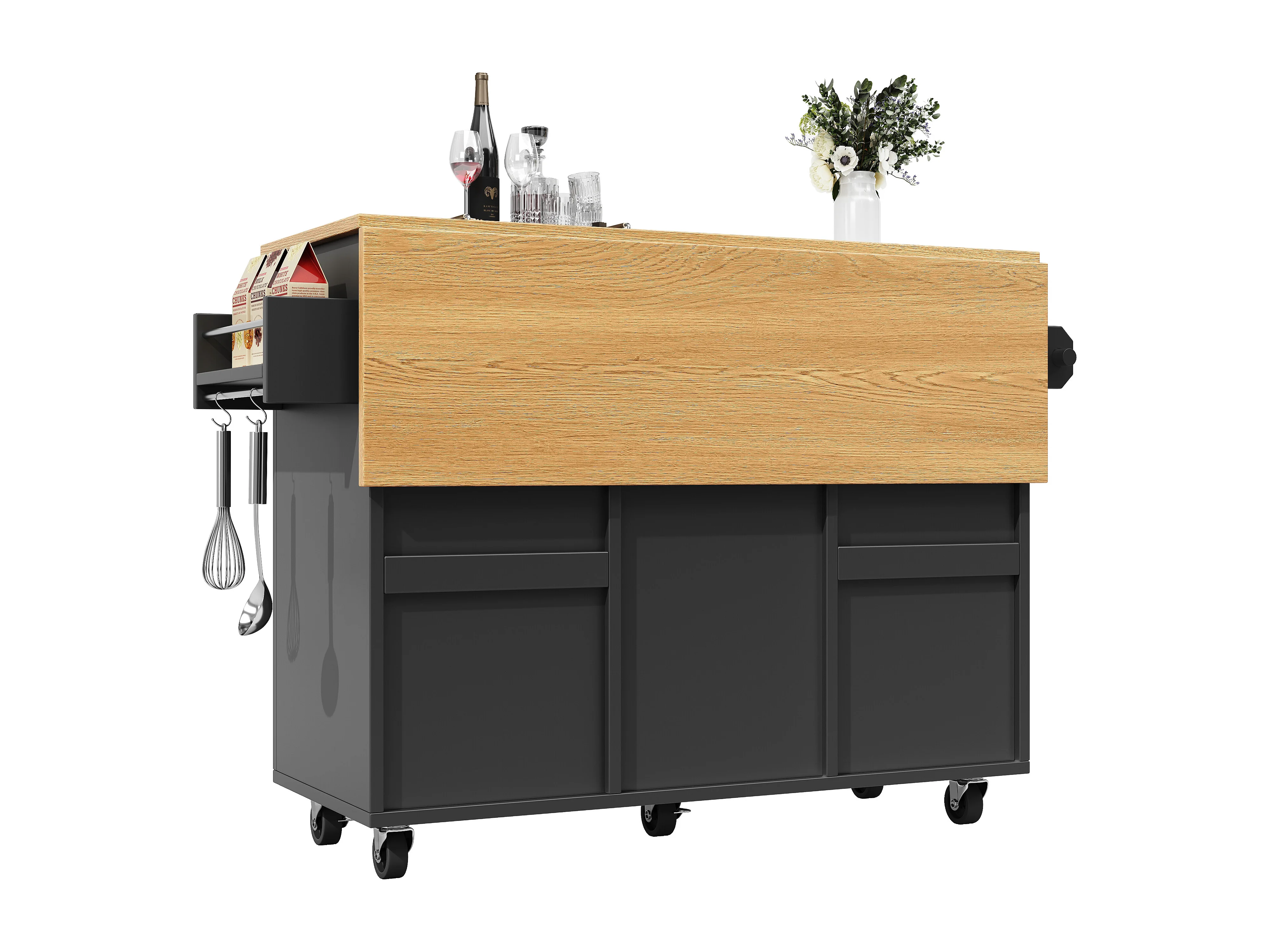 Desserte de cuisine 124x(40-65)x91.5 cm 2 portes et 3 tiroirs Îlot de cuisine avec plateau extensible - noir