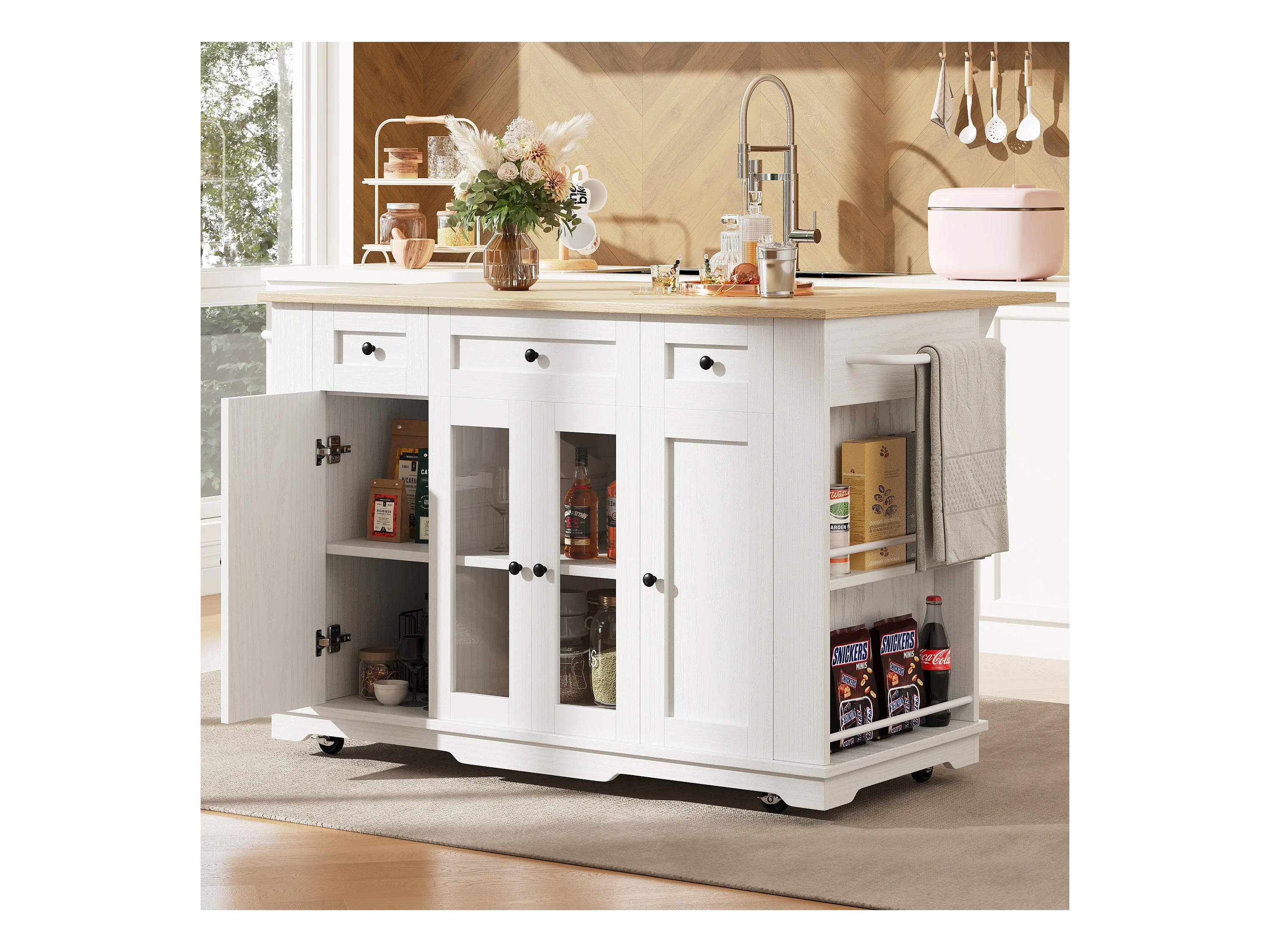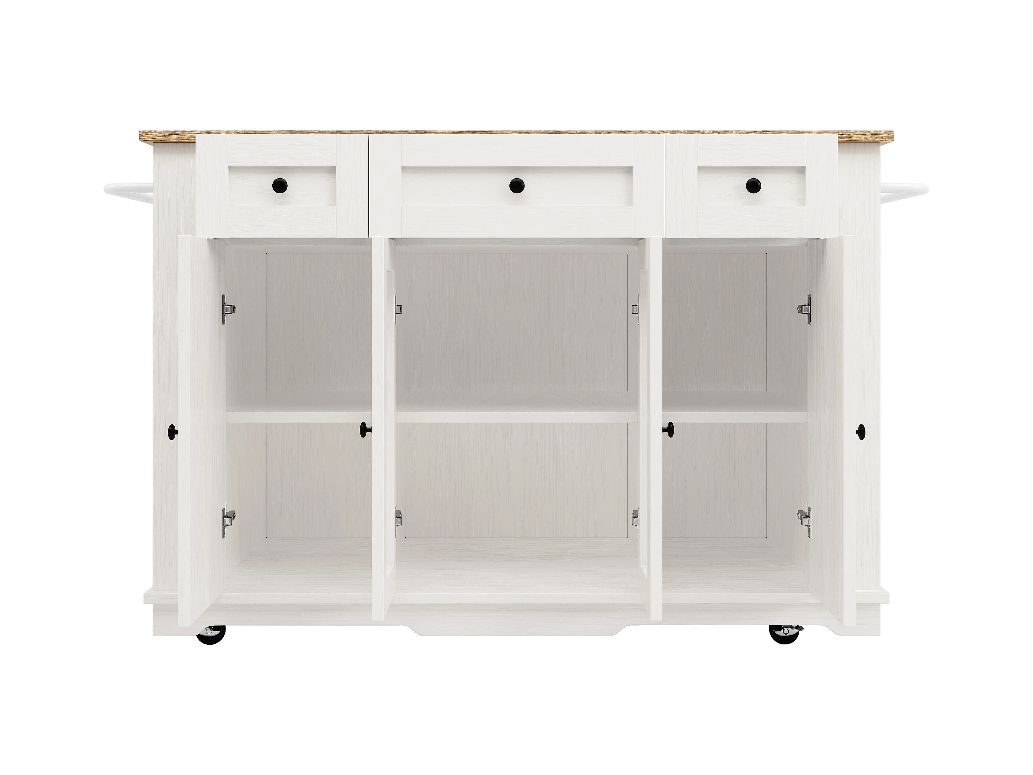Desserte de cuisine 135x(46-74)x90.8 cm 2 portes et 3 tiroirs Îlot de cuisine avec plateau extensible - blanc