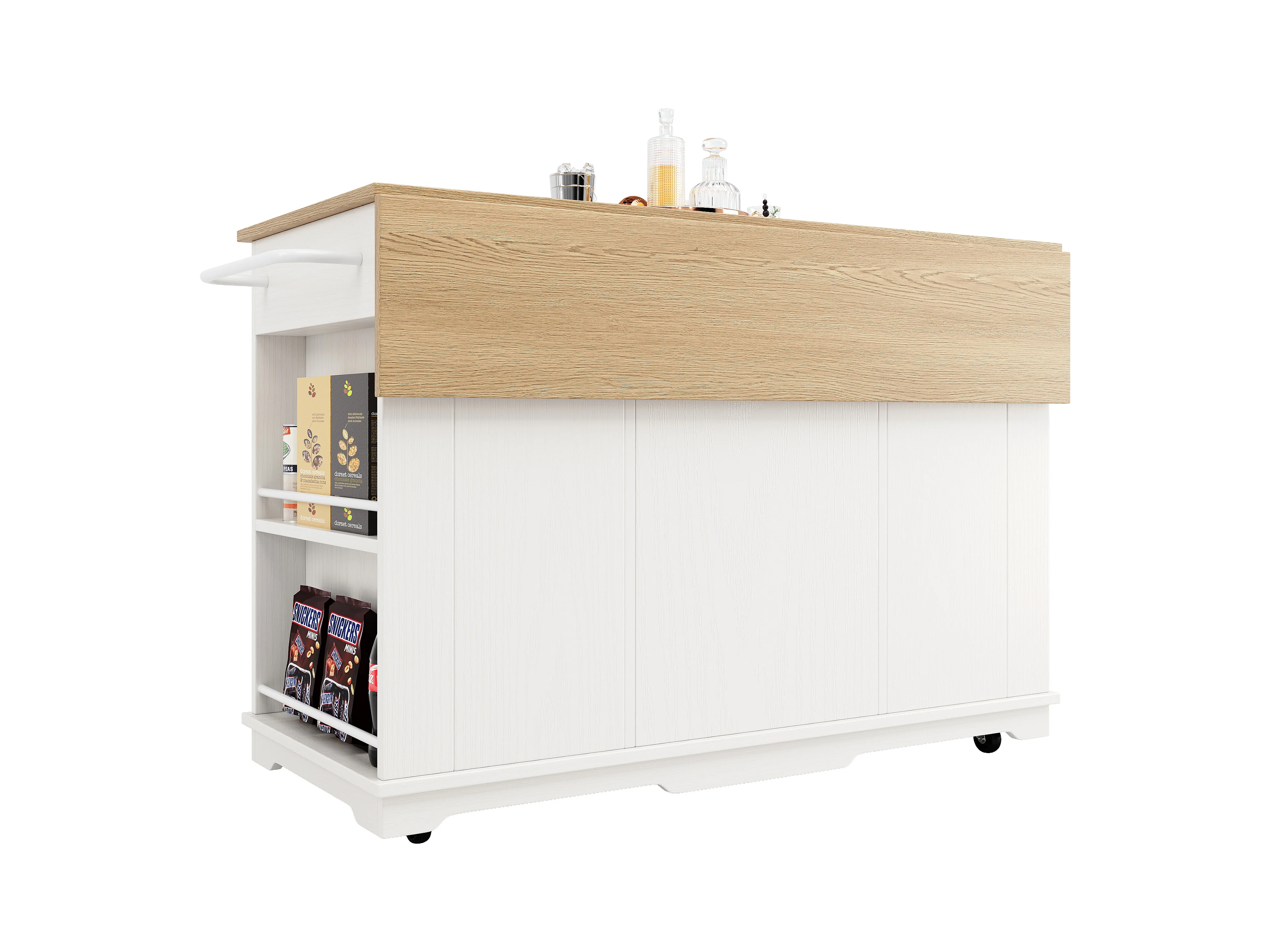 Desserte de cuisine 128x(50-78)x90.5 cm 4 portes et 2 tiroirs Îlot de cuisine avec plateau extensible - blanc