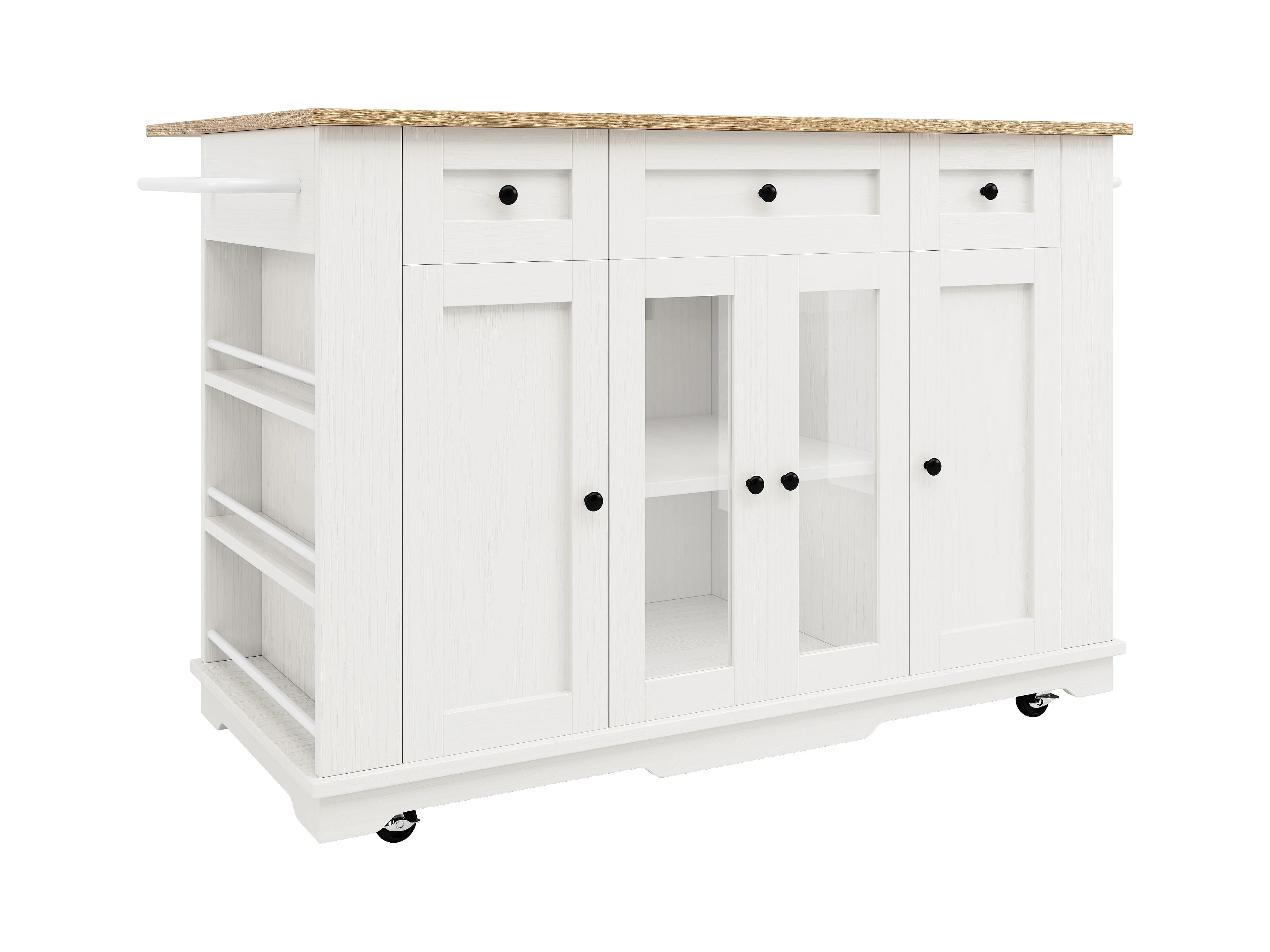 Desserte de cuisine 120x(30/70)x79.5 cm 2 portes en verre Îlot de cuisine avec plateau extensible - blanc