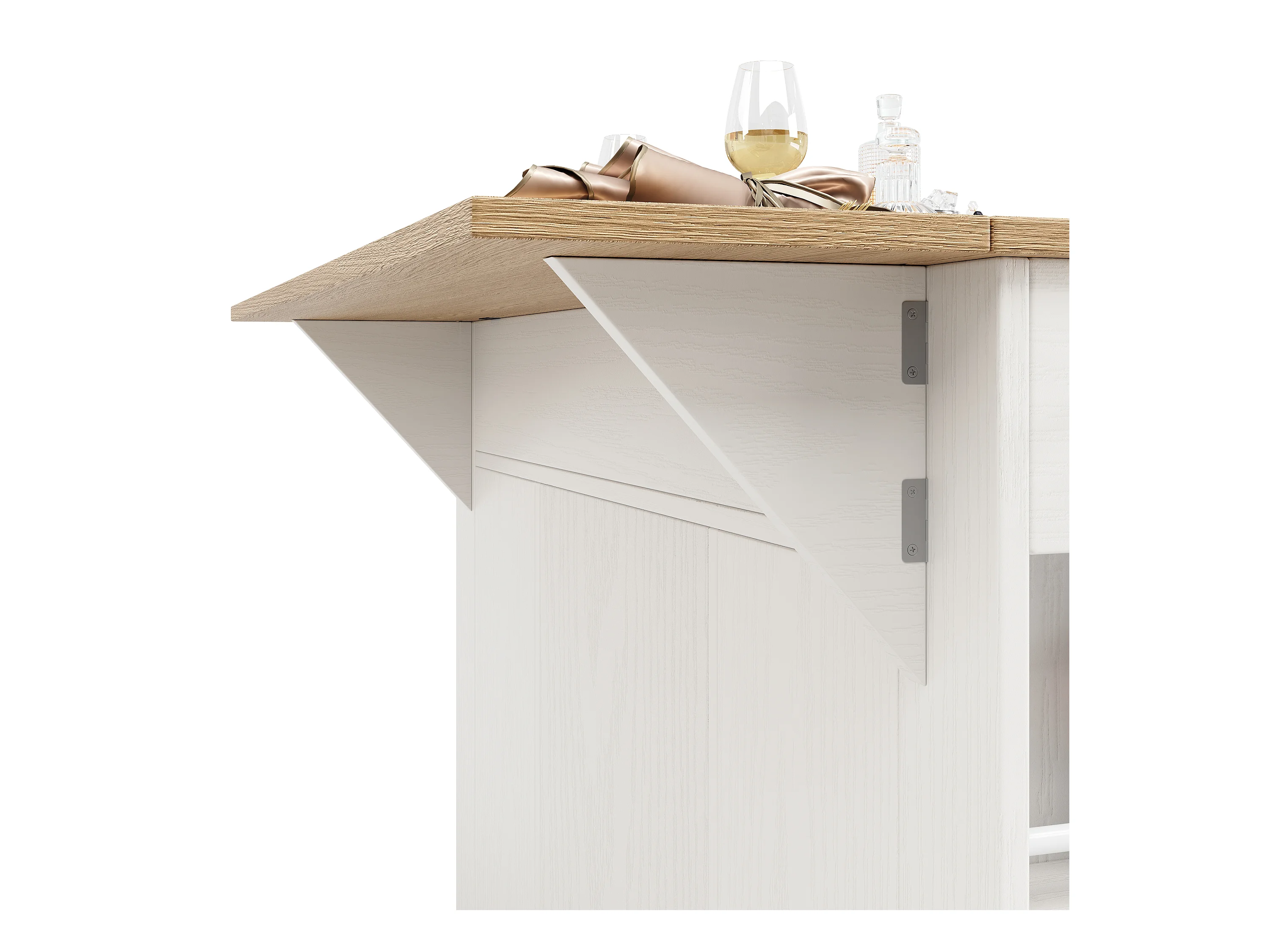 Desserte de cuisine 120x(42-76)x91.5 cm 1 porte et 2 tiroirs Îlot de cuisine avec plateau extensible - blanc