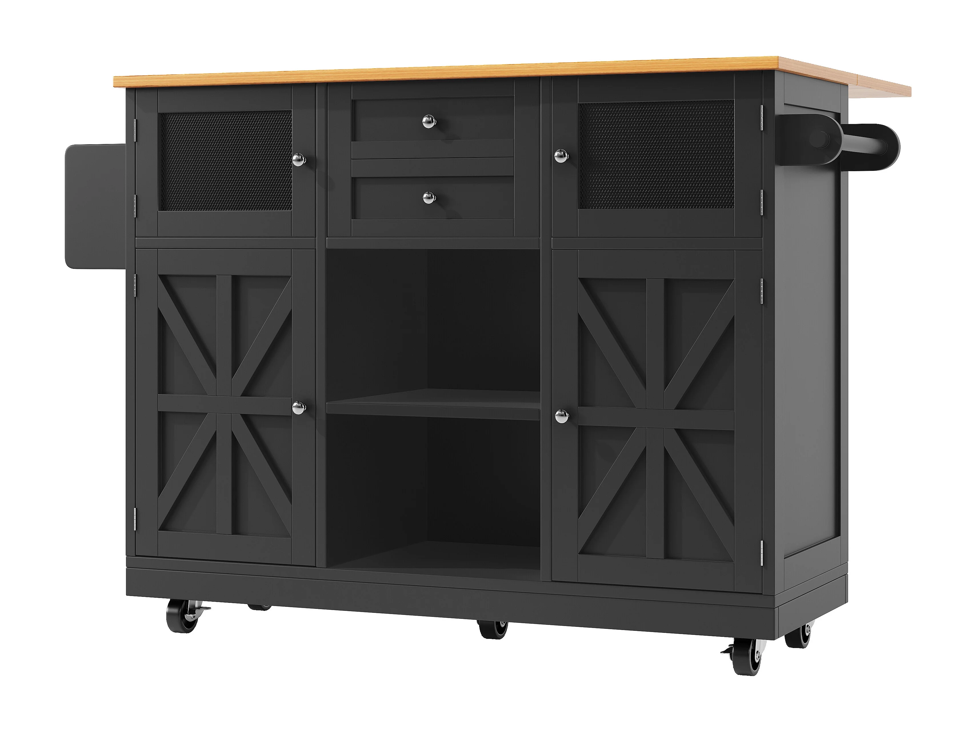 Desserte de cuisine mobile 2 portes et 2 tiroirs Îlot de cuisine avec plateau extensible 134x(45.2-75.4)x89 cm - noir
