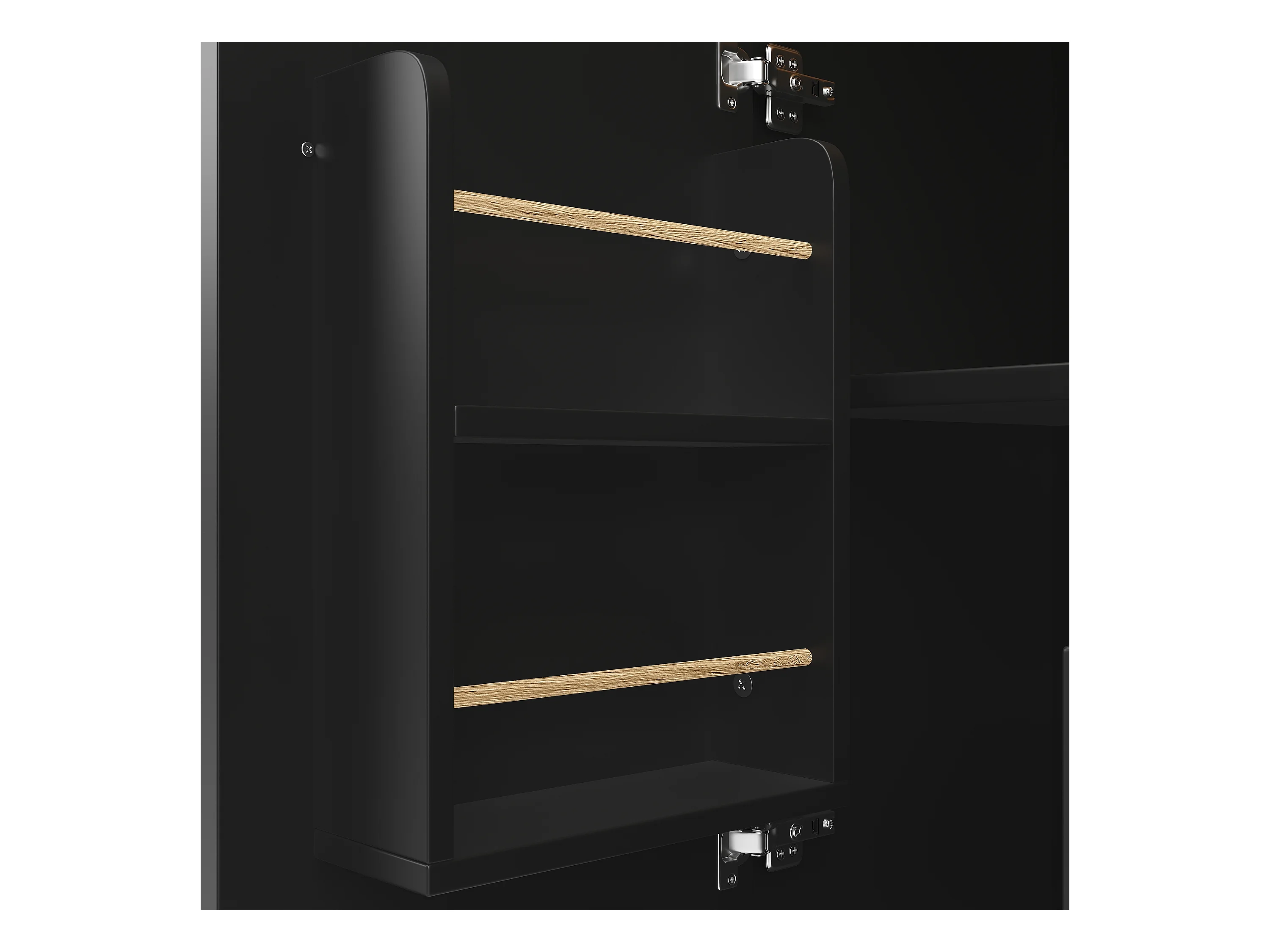 Desserte de cuisine noire - Îlot central de cuisine avec 4 tiroirs et 1 porte - etagère à épices et porte-serviettes - rangement ouvert