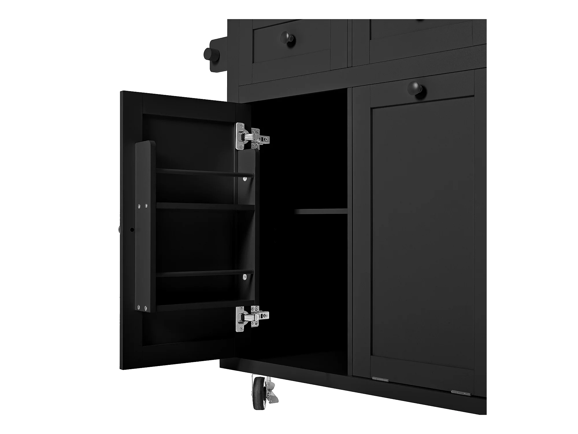 Desserte noir - Desserte avec 4 tiroirs et 2 portes - plateau rétractable et étagère à épices - pour salles à manger et cuisines