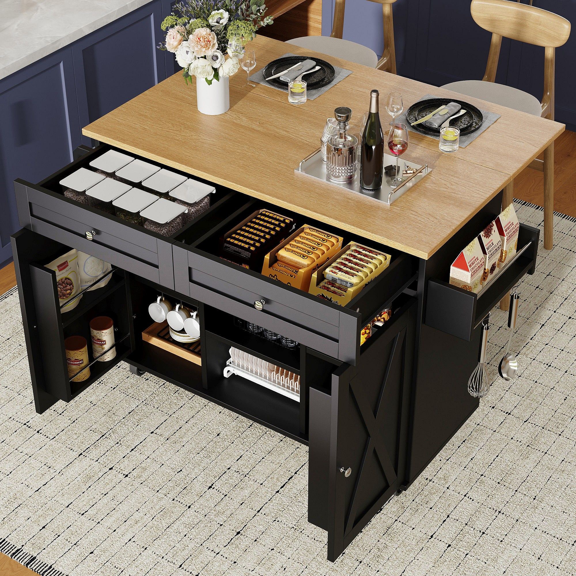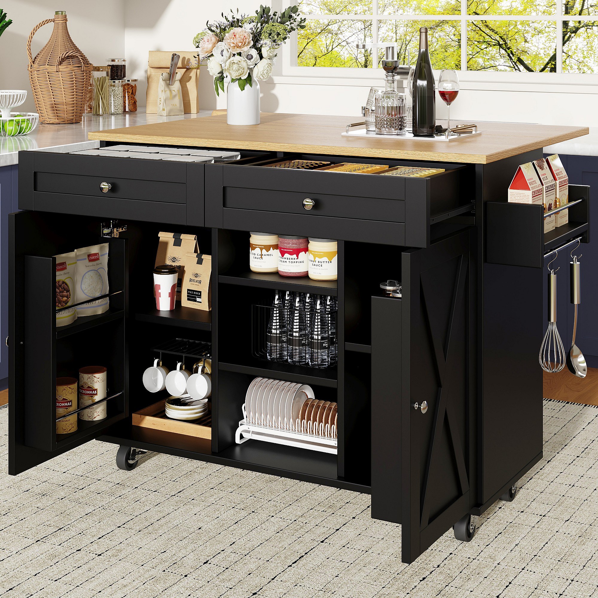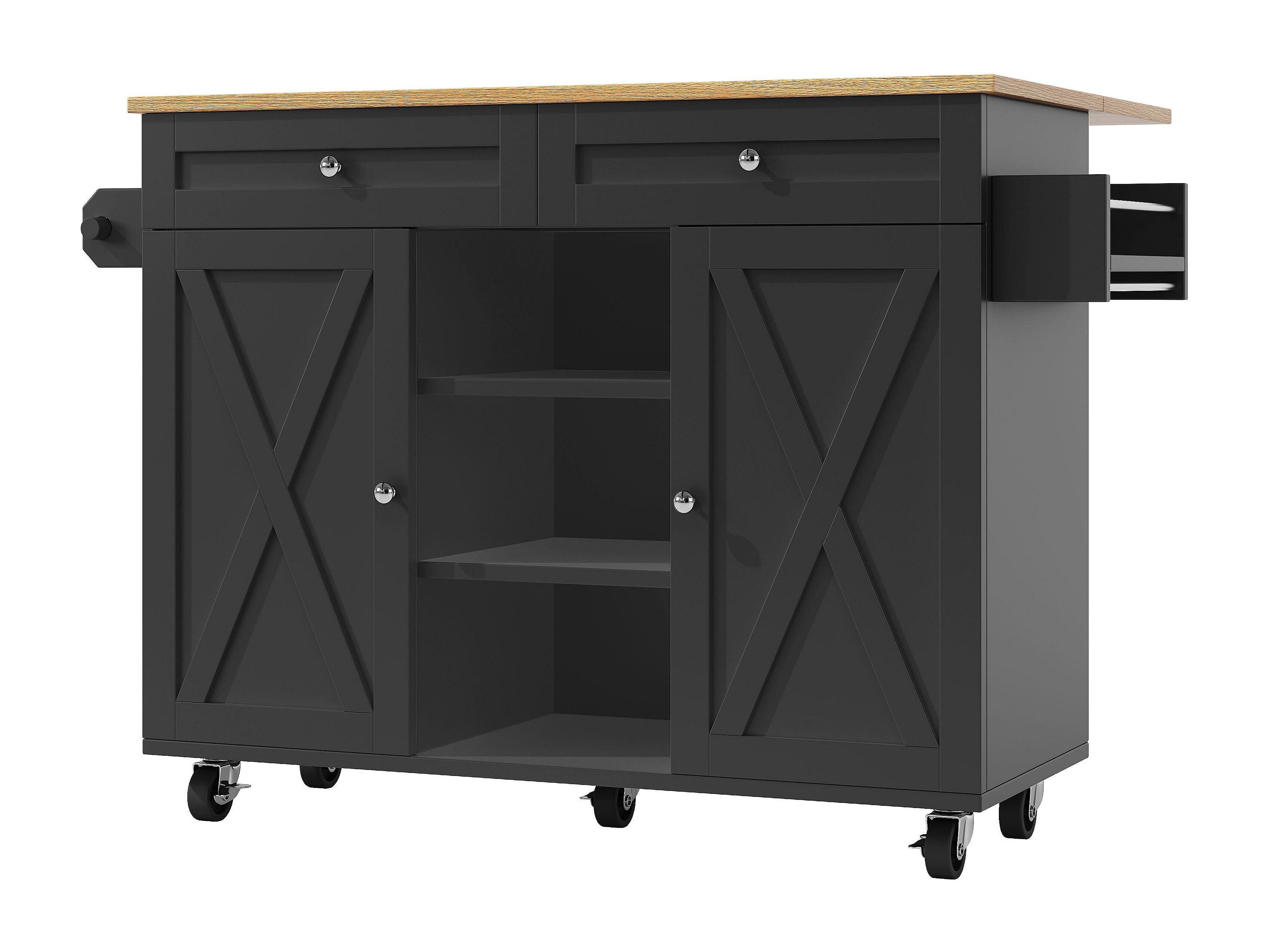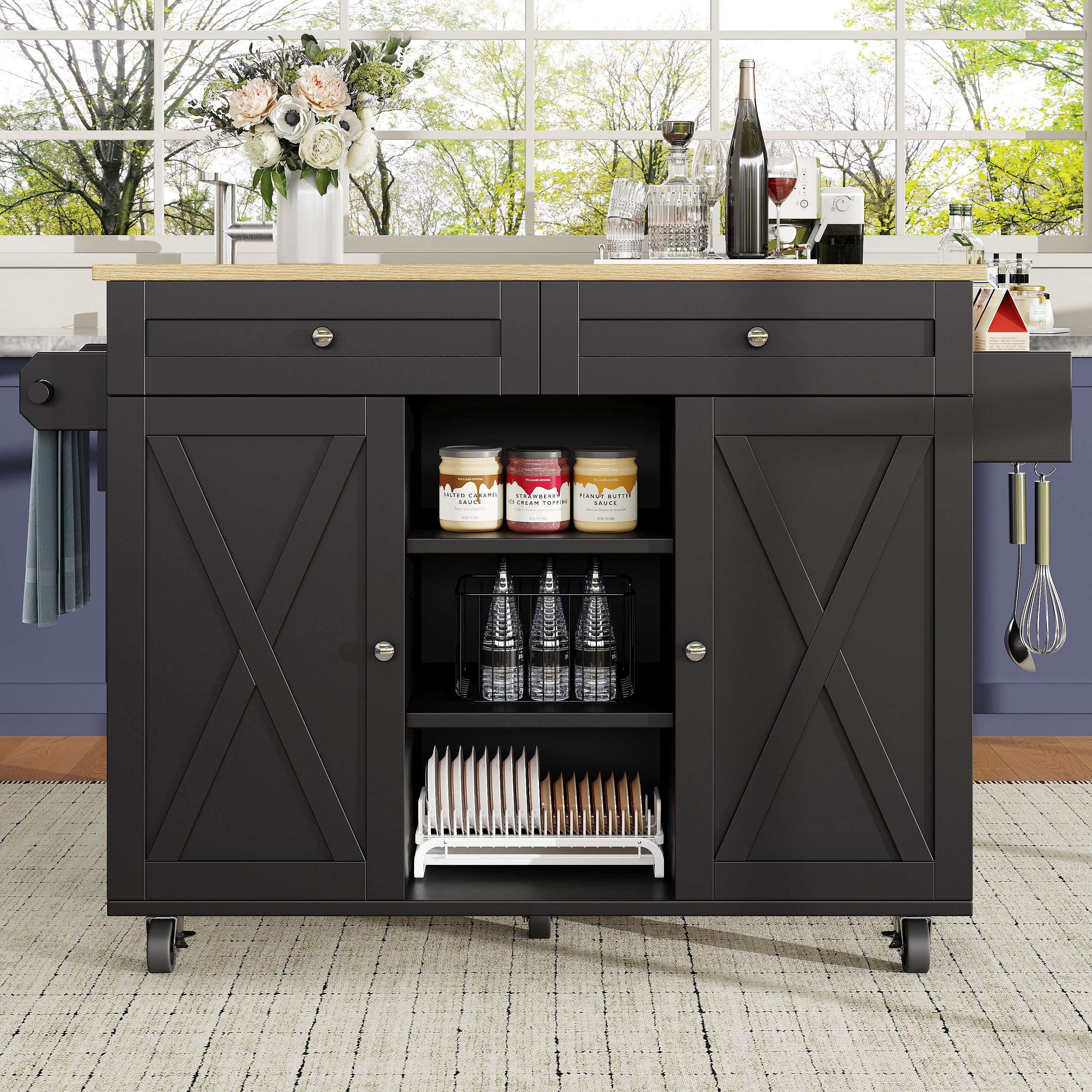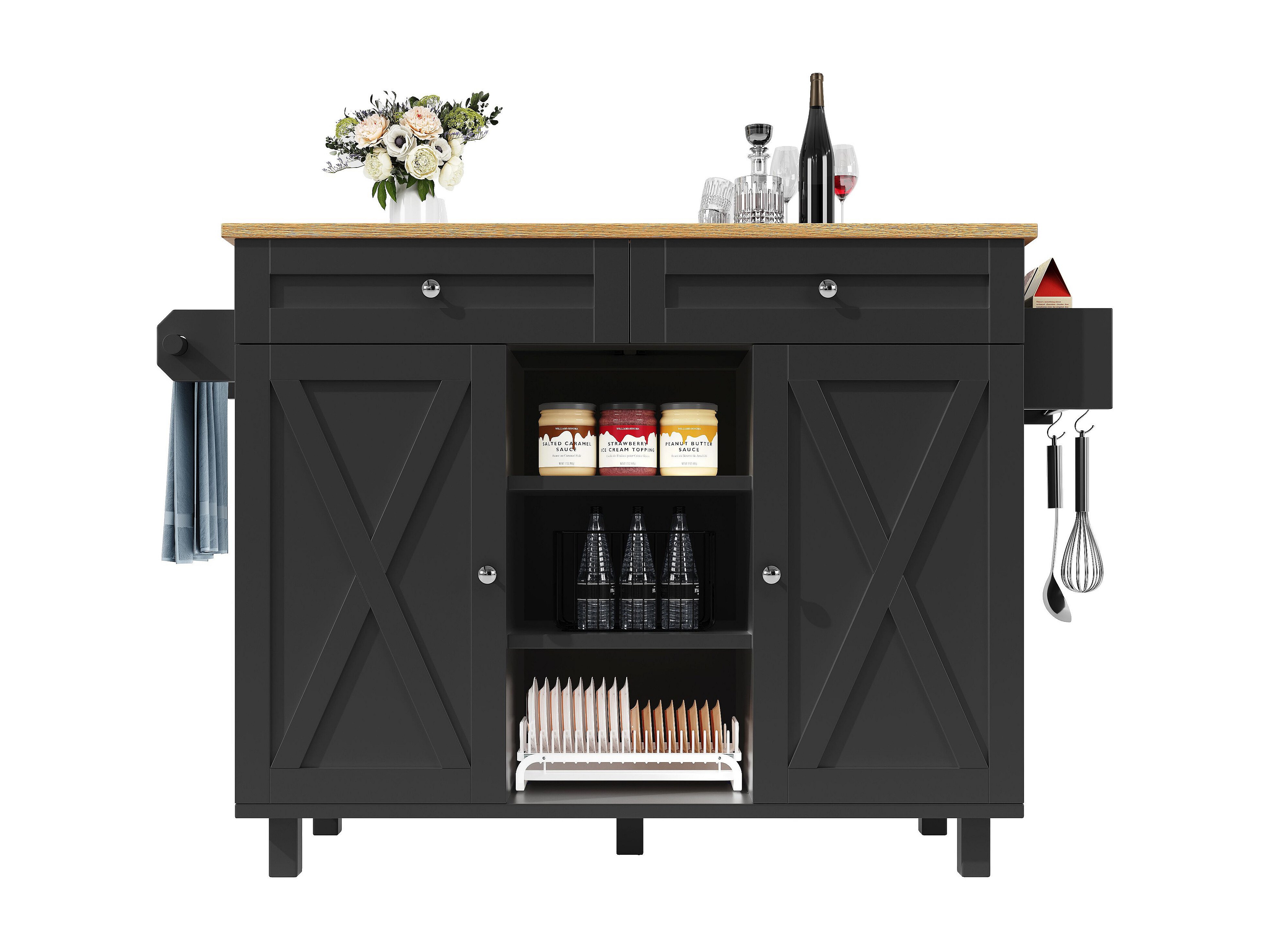 Desserte de cuisine noire avec 2 tiroirs et 2 portes, plateau en bois - pour salon et cuisine