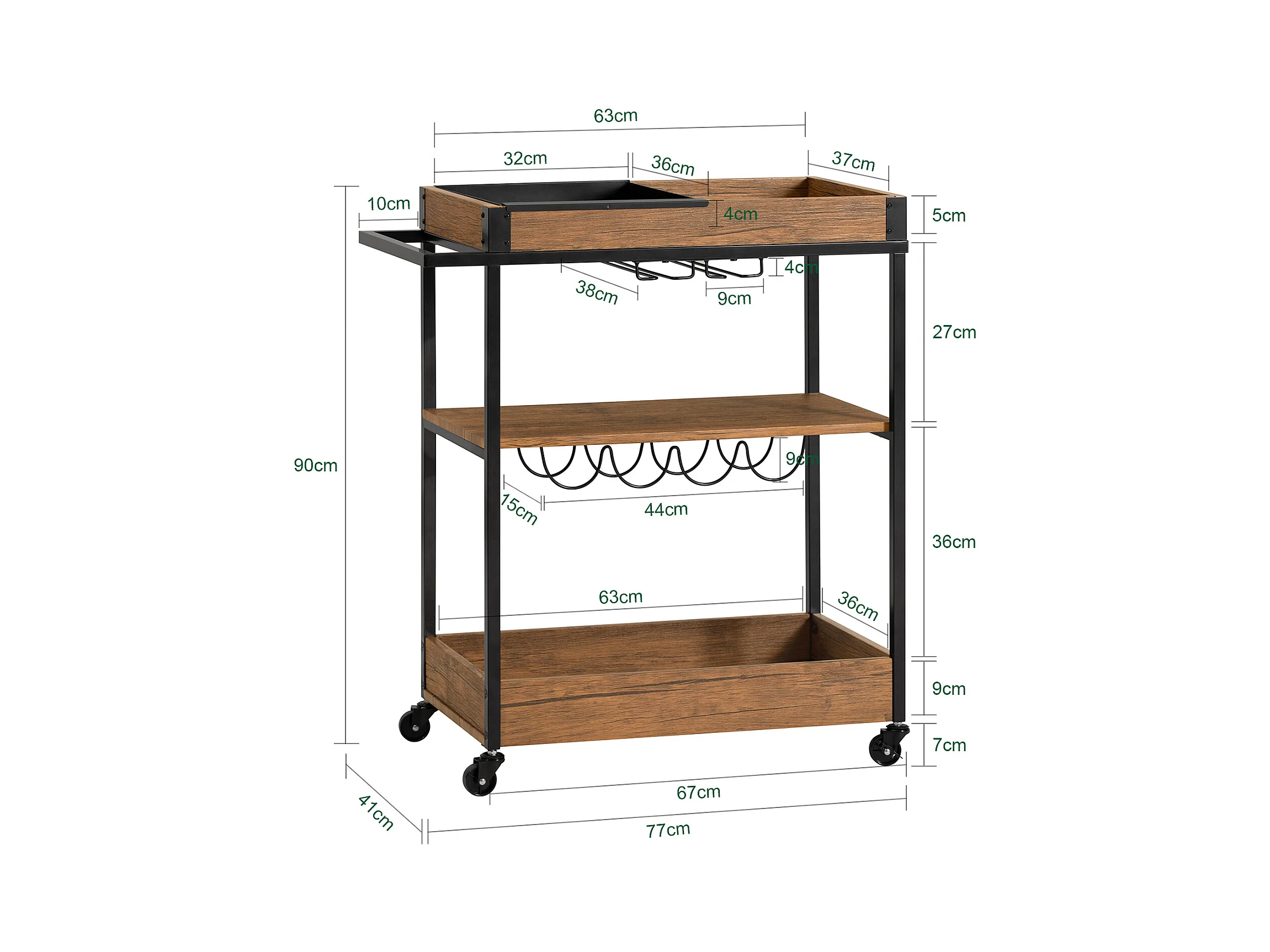 Desserte de Cuisine Roulante Chariot de Service à Roulettes Étagère de Cuisine, SVW19-N