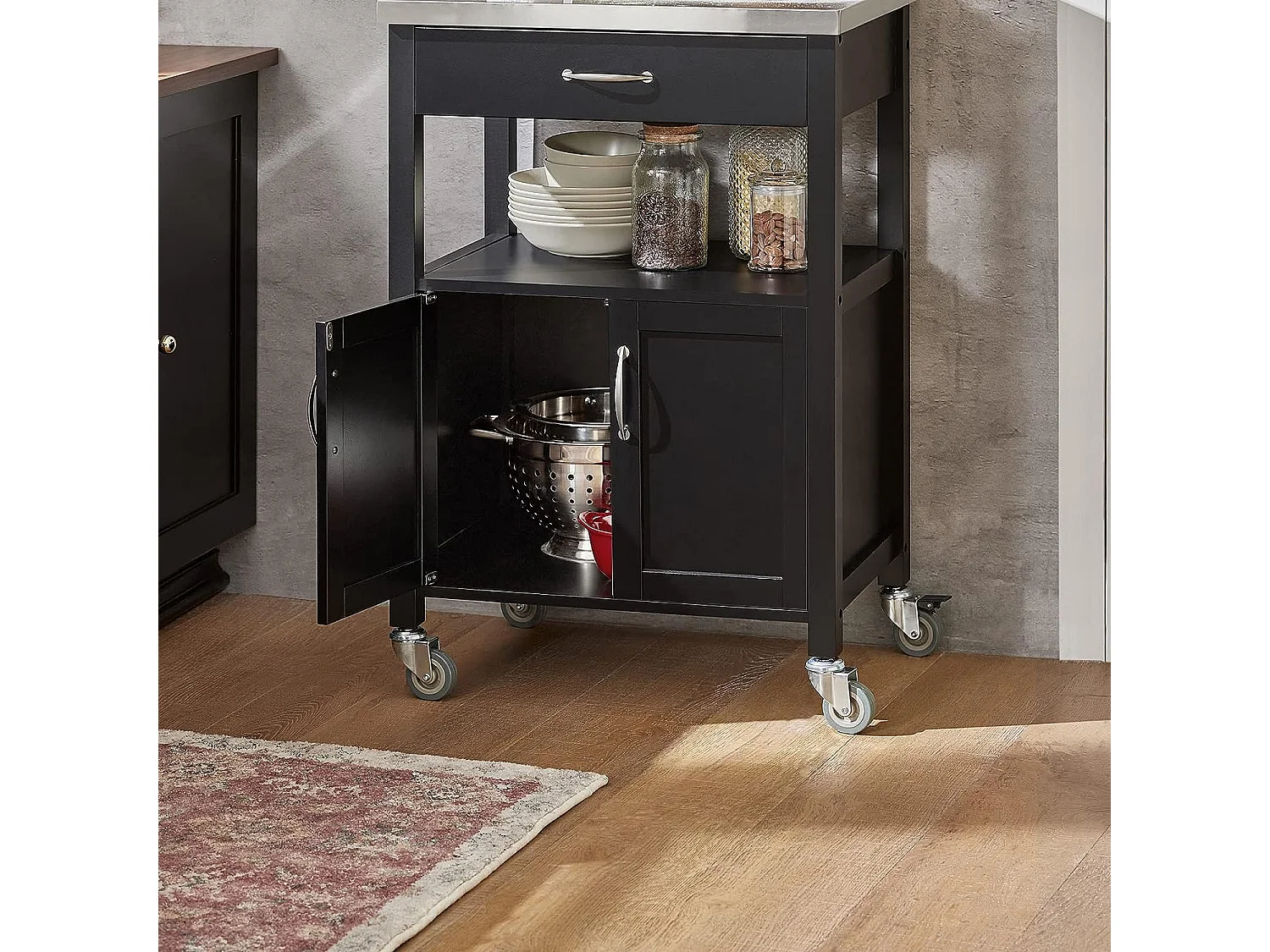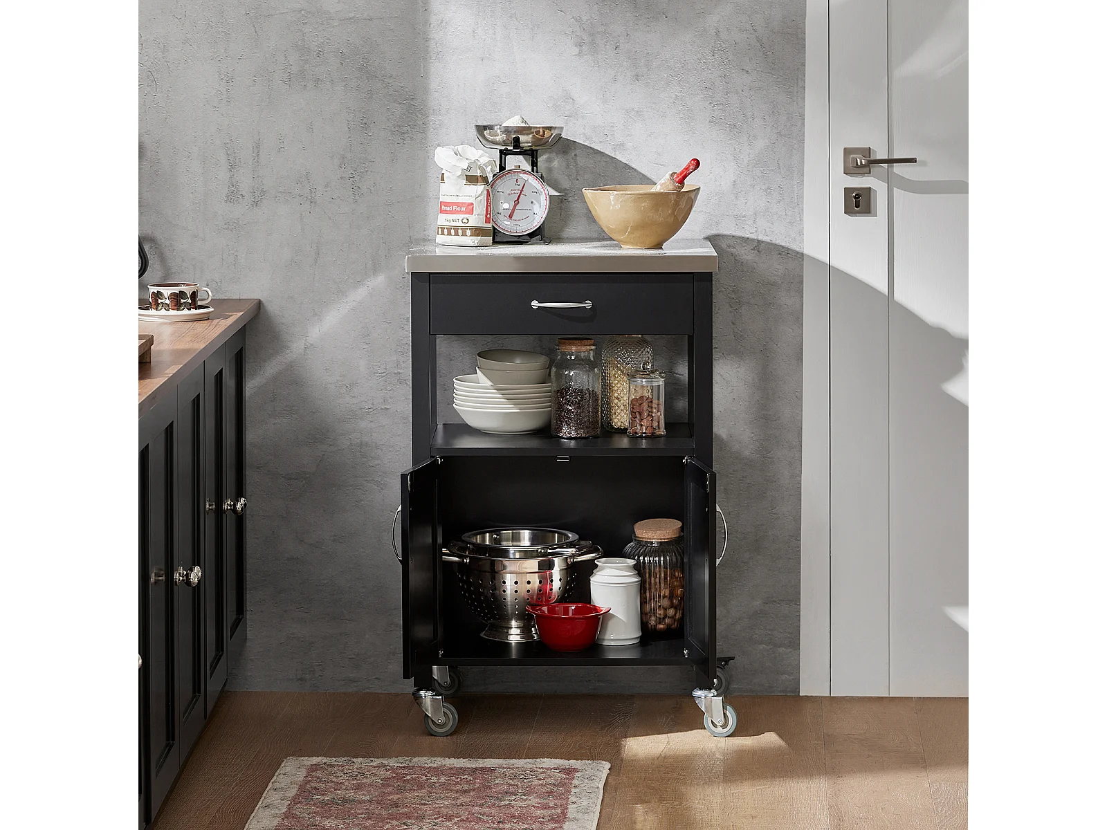 Desserte de Cuisine Roulante, Meuble de Rangement à roulettes Plateau en Acier INOX, FKW22-SCH