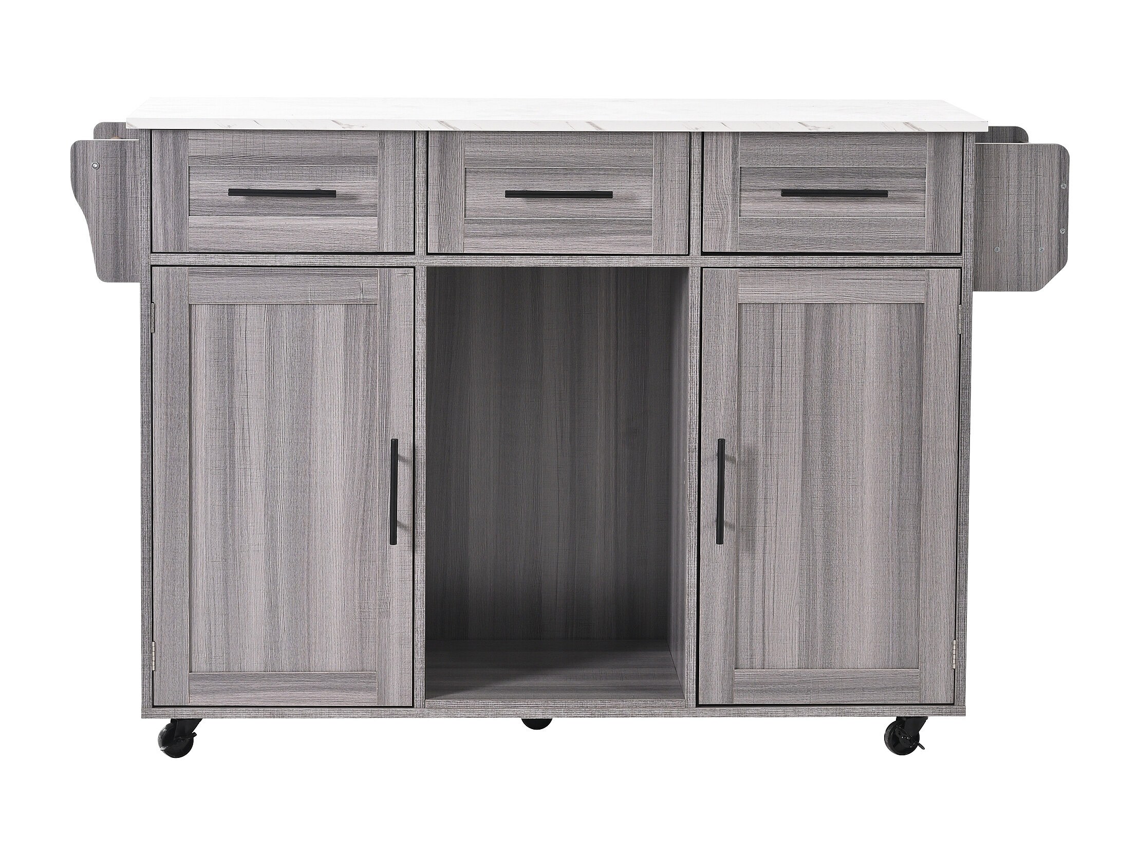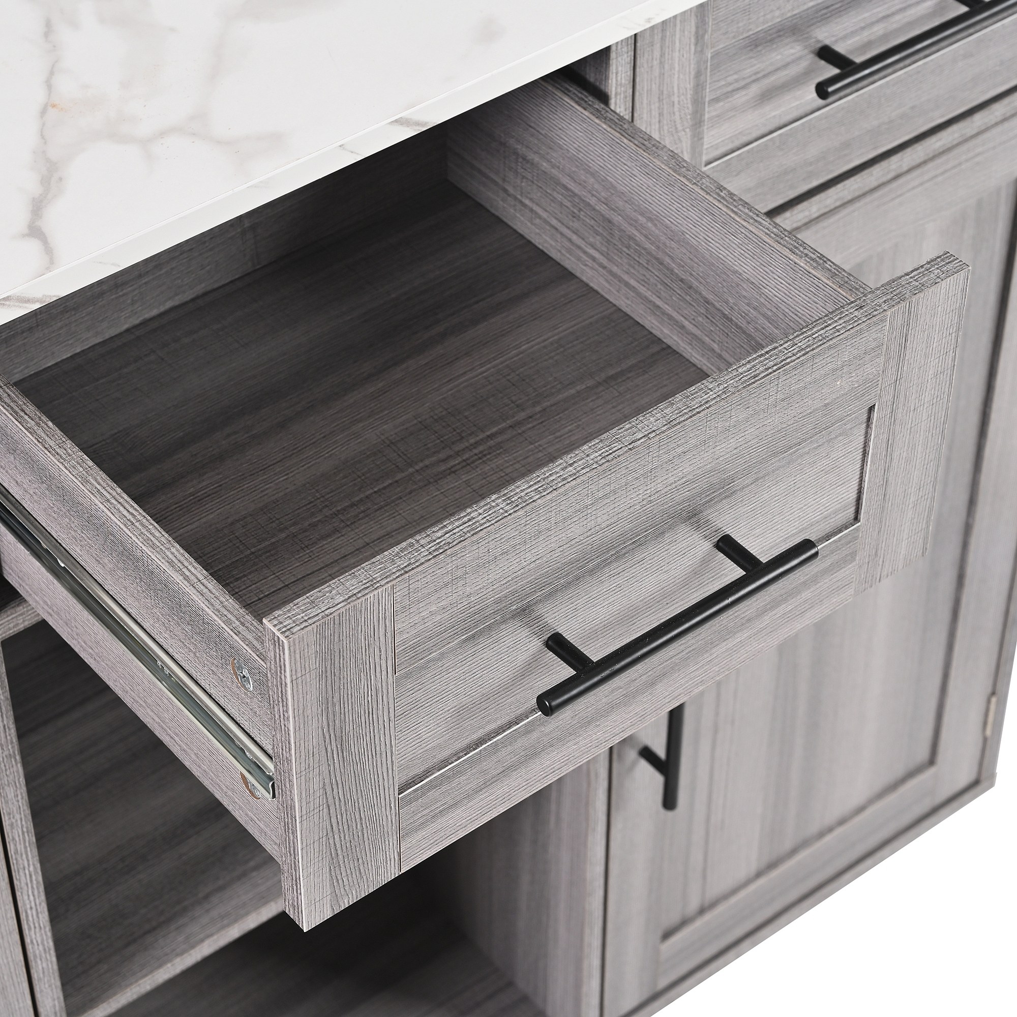 Desserte grise avec plateau en MDF, 3 tiroirs et 2 portes - pour salles à manger et cuisines
