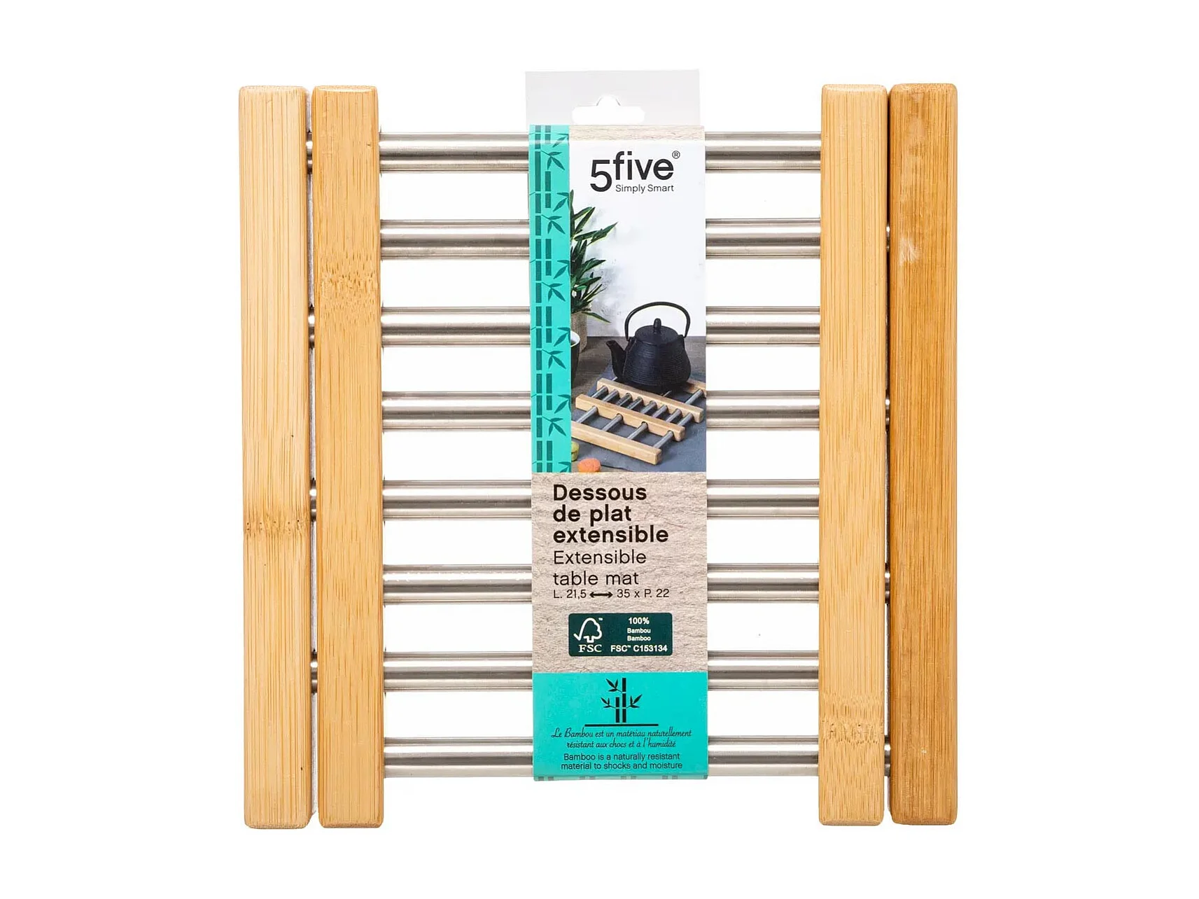 Dessous de Plat Extensible "Bambou & Inox" 35cm Gris