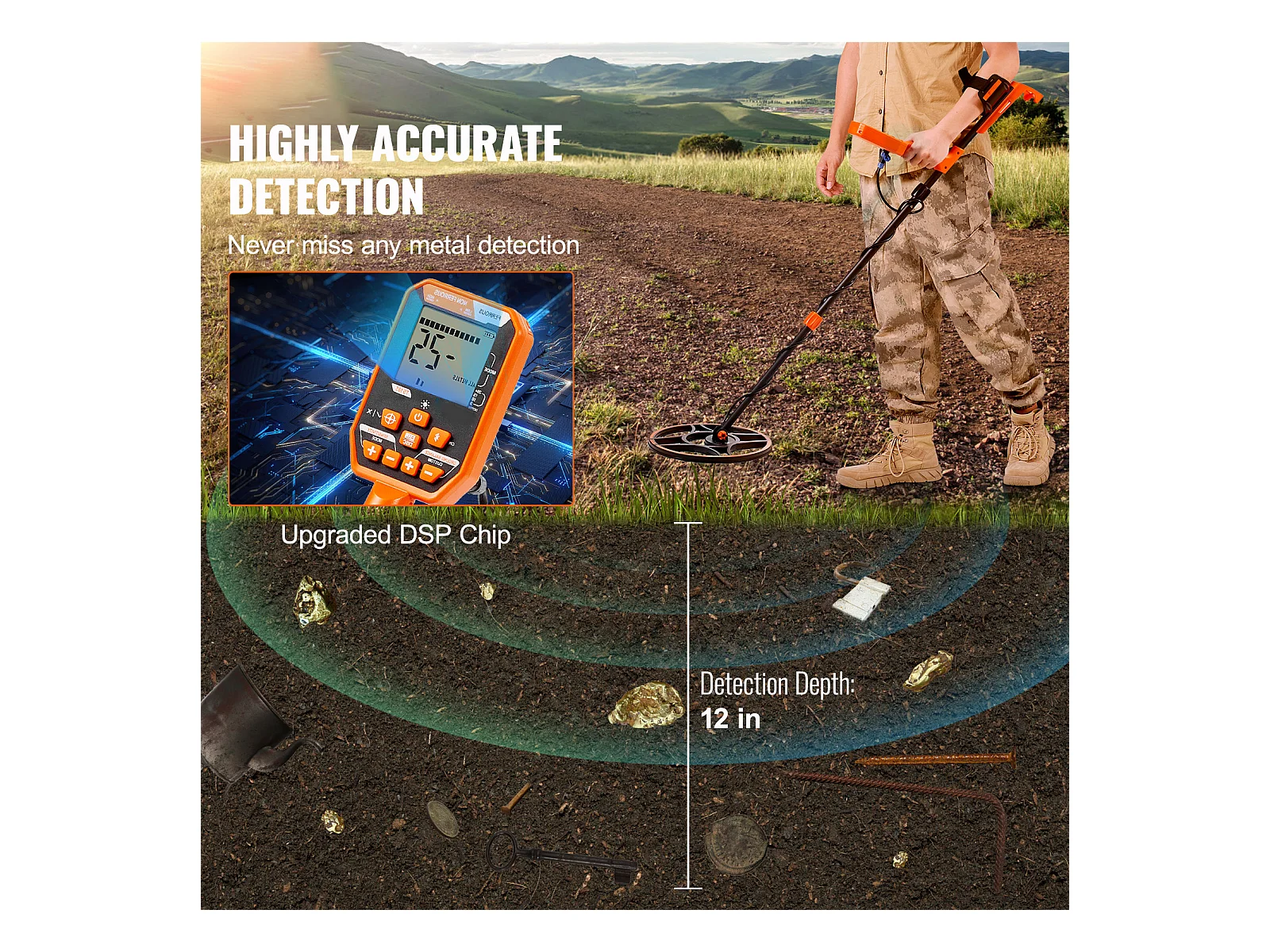 Détecteur de Métaux Étanche SucceBuy, Détecteur d'Or Rechargeable, Bobine de 12 Pouces, Professionnel