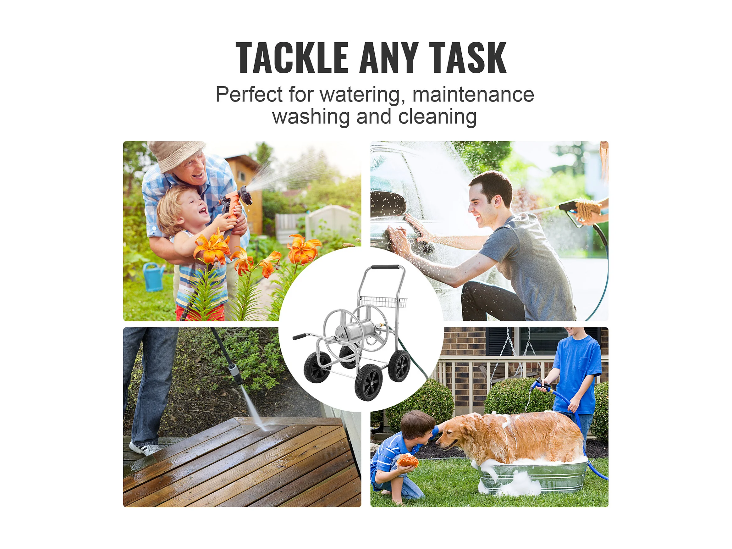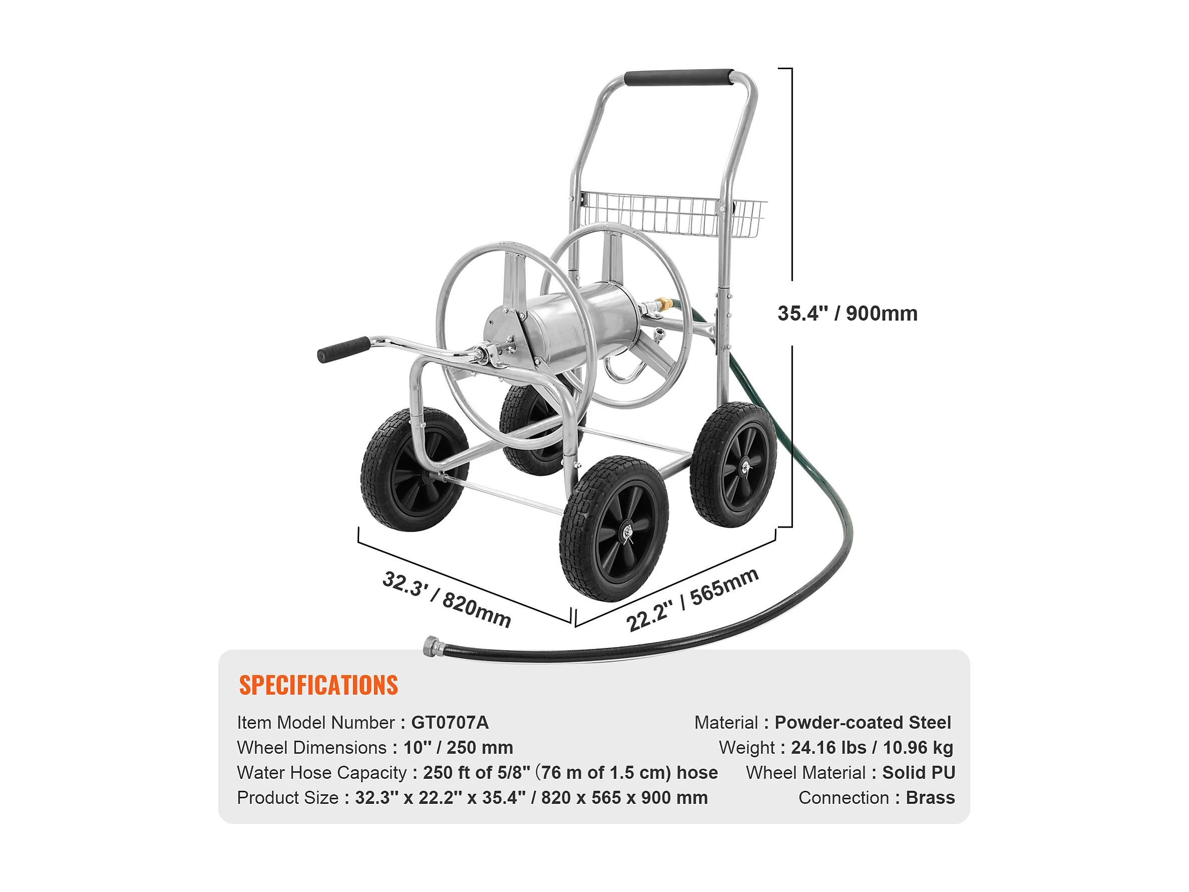 Dévidoir Chariot SucceBuy Chariot Enrouleur de Tuyau 76 m, Robuste pour Jardin avec Roues
