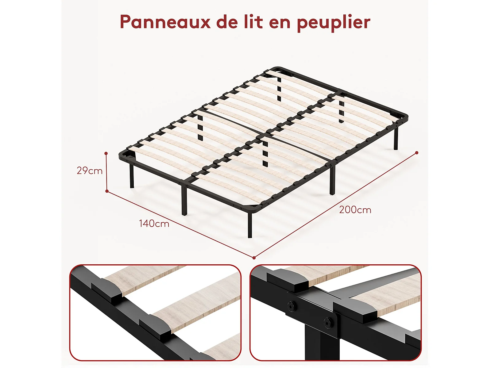 Sommier à Latte 140x200 cm Métal Noir Structure Solide Haute Qualité - Anti-grincement - Confortable et Résistant - Douce Lune