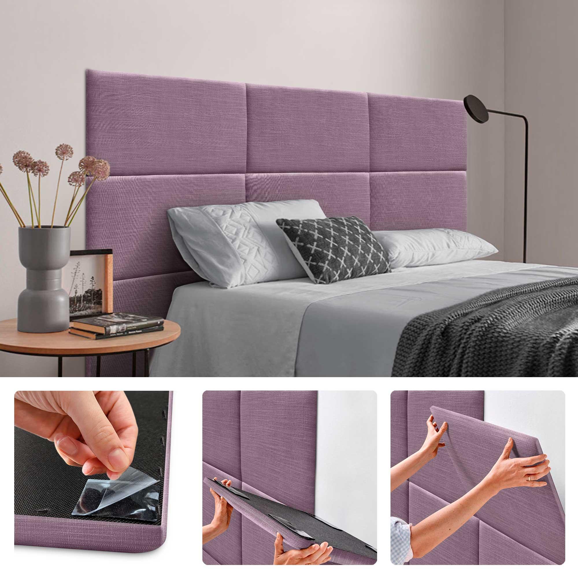 DHOME Panneaux Tapissés en Lin Autoadhésifs pour Mur Acoustiques Absorbants Protection Contre les Impacts Têtes de Lit Décoration (Lilas, 50x40cm)