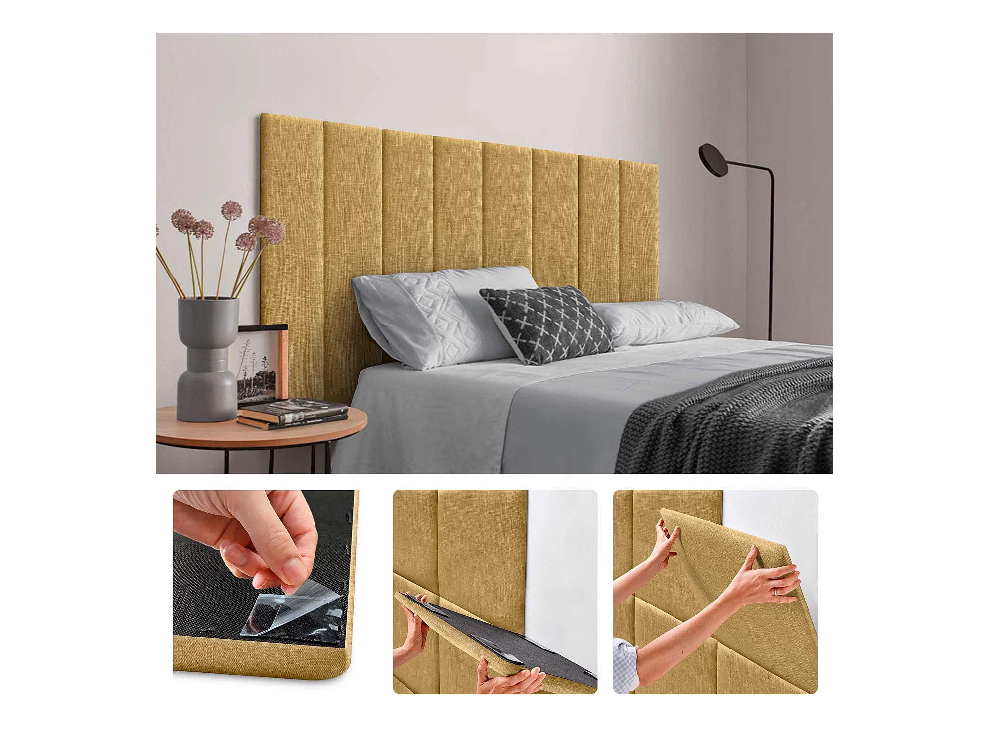 DHOME Tête de lit capitonnée en lin naturel composée de panneaux autocollants interchangeables pour chambre de luxe rembourrée (moutarde, 190 cm)