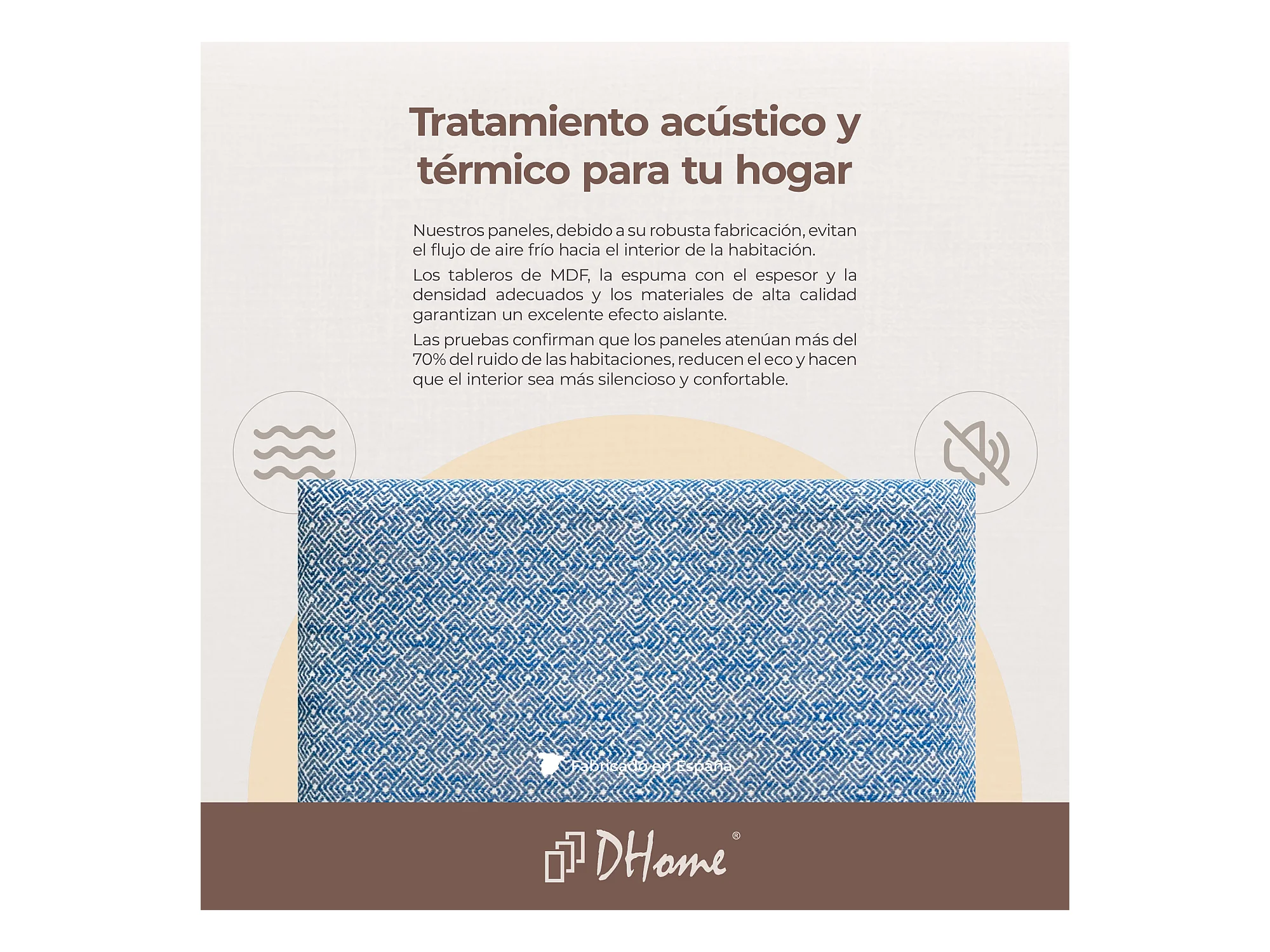 DHOME Ensemble de 1 Panneaux Tapissés en Tissu de Luxe Pack Autoadhésif pour Mur Acoustique Absorbant et Protecteur (Ethnic Blue, 60x60cm, x1)