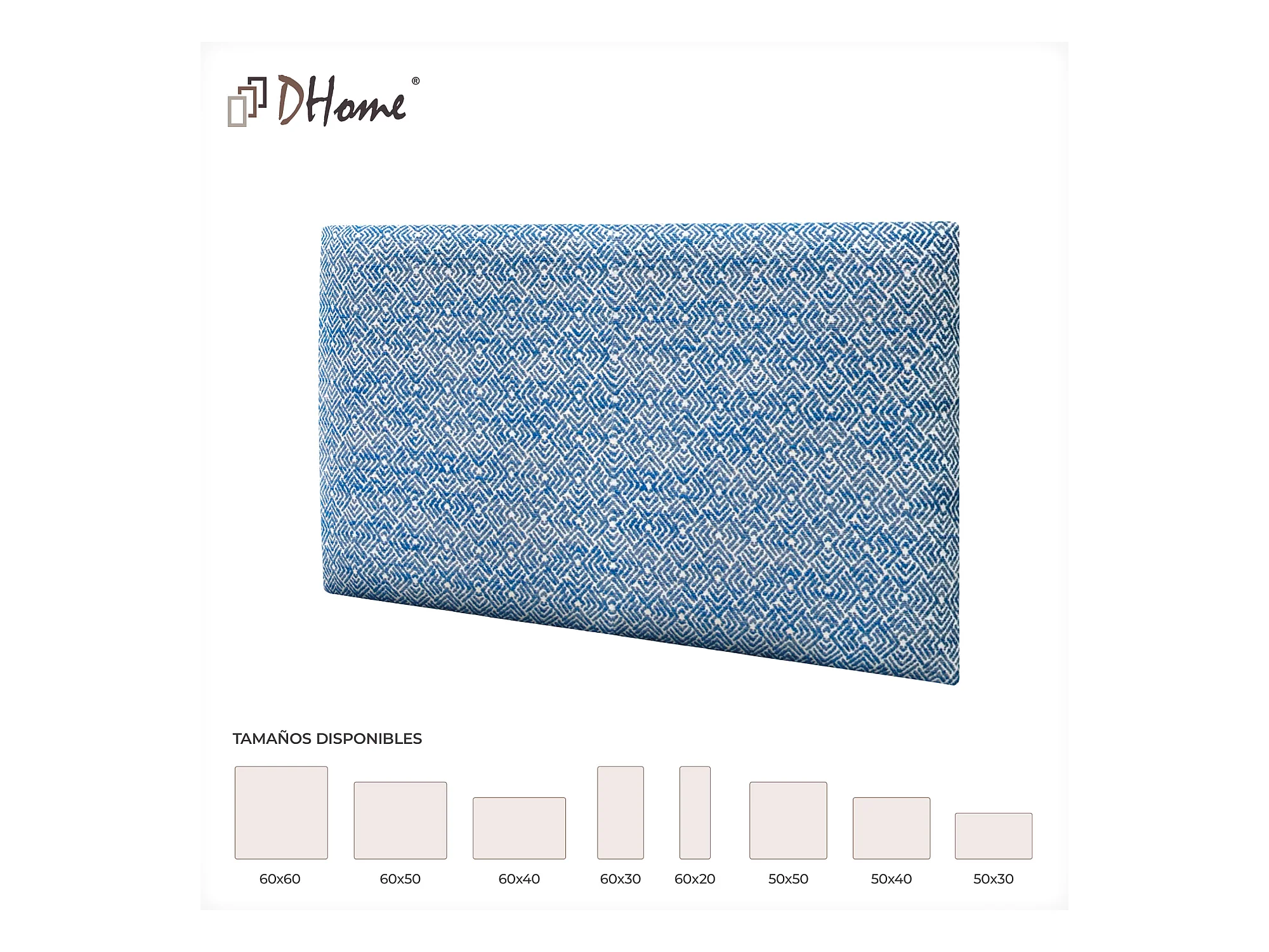 DHOME Tête de Lit Rembourrée Composée de Panneaux Autoadhésifs Interchangeables Série Luxury Edition Lit de Luxe Chambre (Ethnic Blue, 105cm)