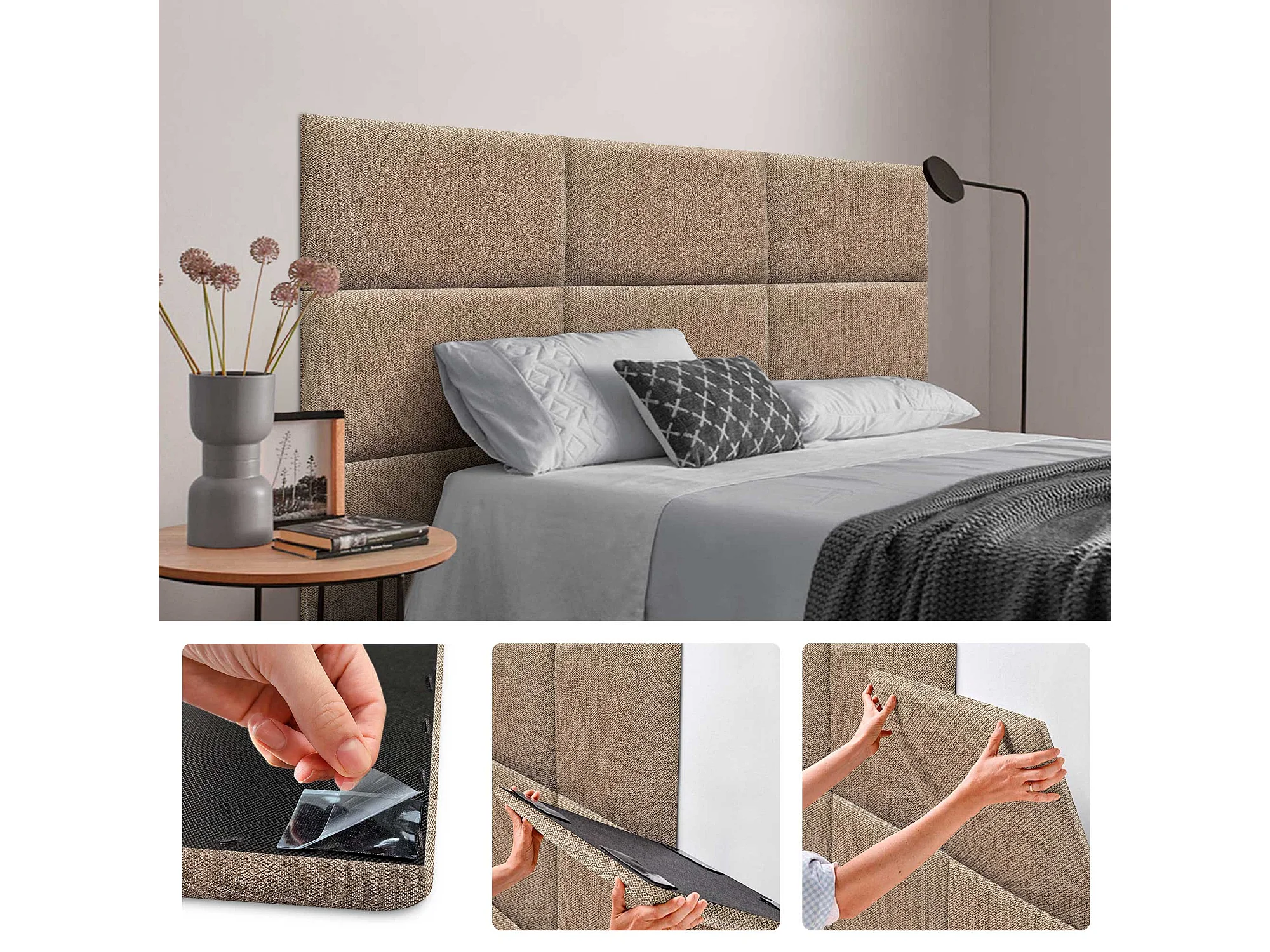 DHOME Ensemble de 6 Panneaux muraux en lin autocollants, absorption acoustique, protection contre les chocs et Têtes de Lit (Vert, 50x30cm, x6)