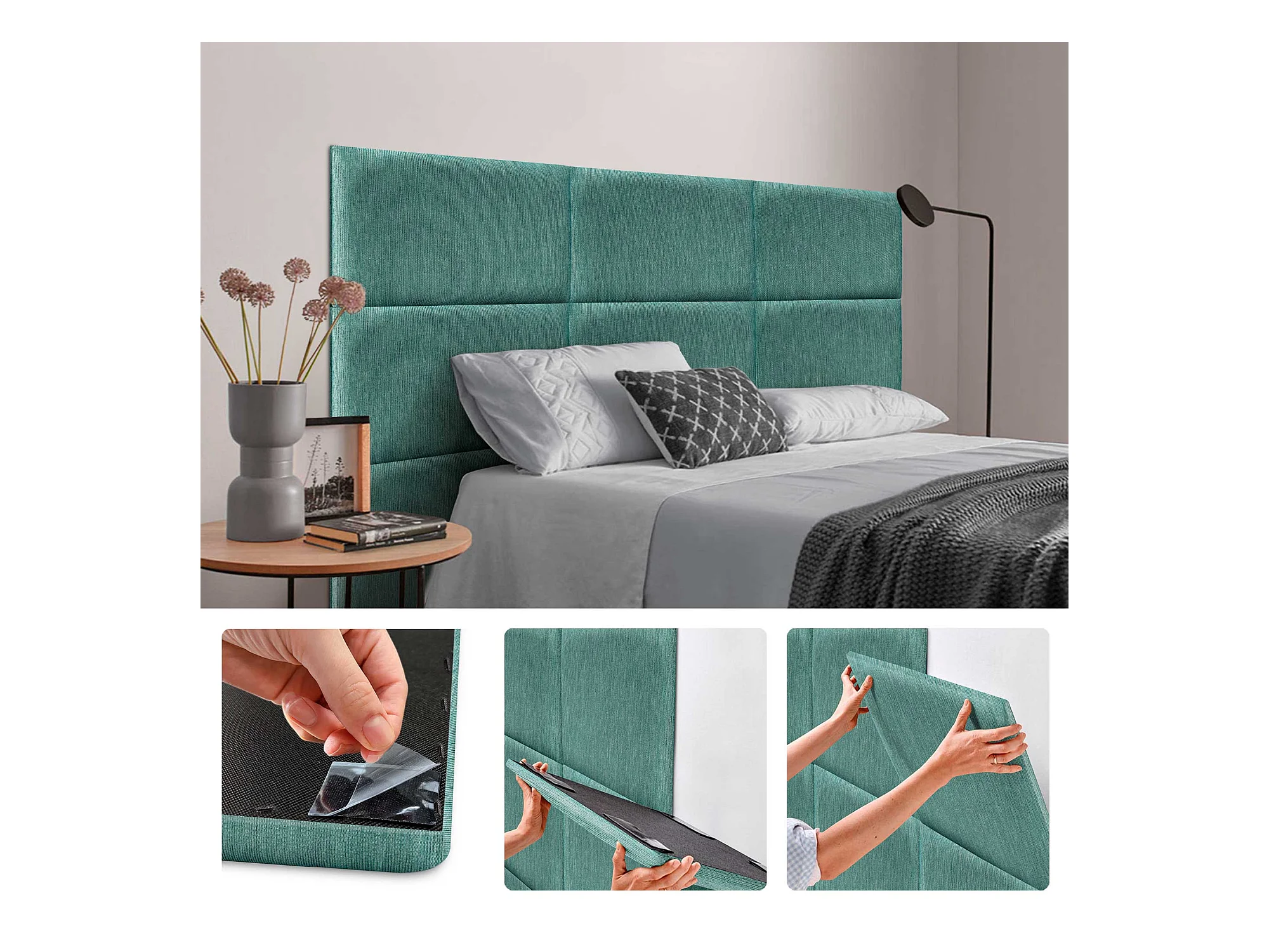 DHOME Tête de Lit Rembourrée Composée de Panneaux Autoadhésifs Interchangeables Série Luxury Edition Lit de Luxe Chambre (Lineal Green, 105cm)