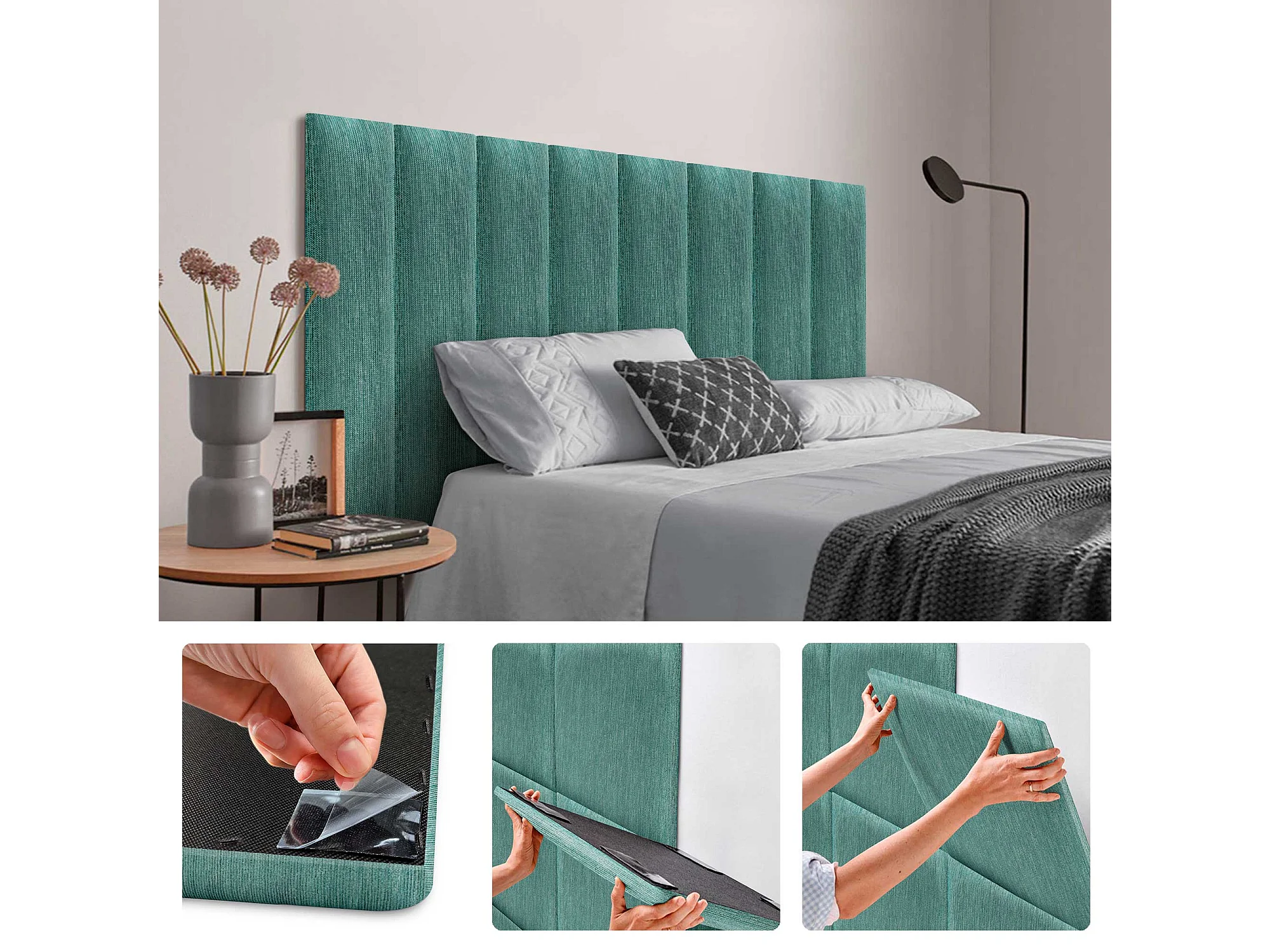 DHOME Ensemble de 1 Panneaux Tapissés en Tissu de Luxe Pack Autoadhésif pour Mur Acoustique Absorbant et Protecteur (Lineal Green, 60x20cm, x1)