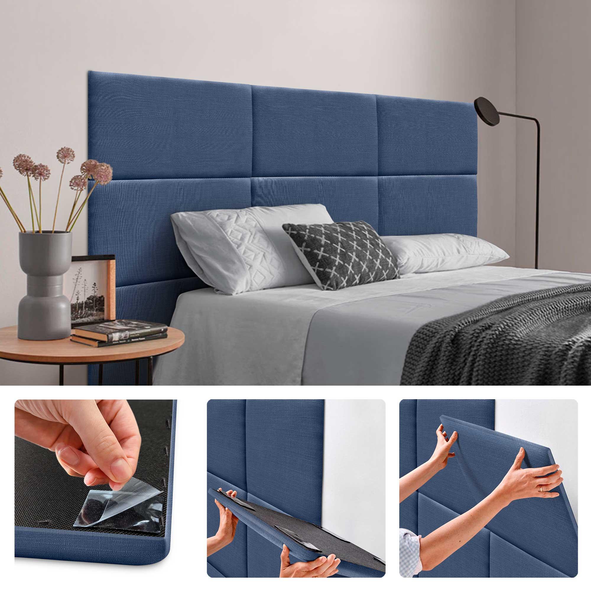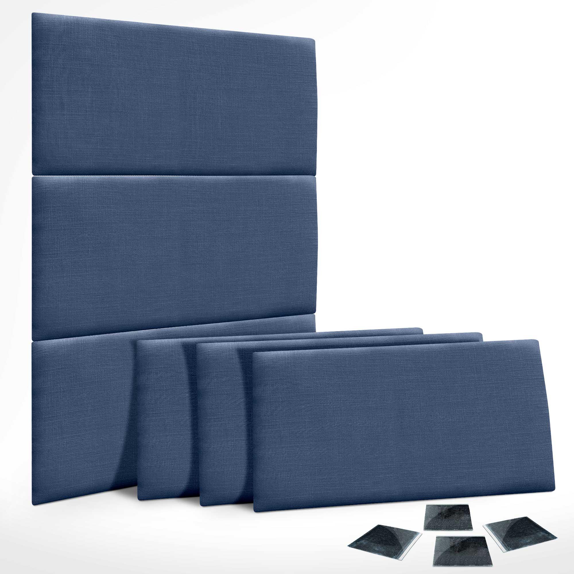 DHOME Ensemble de 6 Panneaux muraux en lin autocollants, absorption acoustique, protection contre les chocs et Têtes de Lit (Bleu Marine, 60x50cm, x6)
