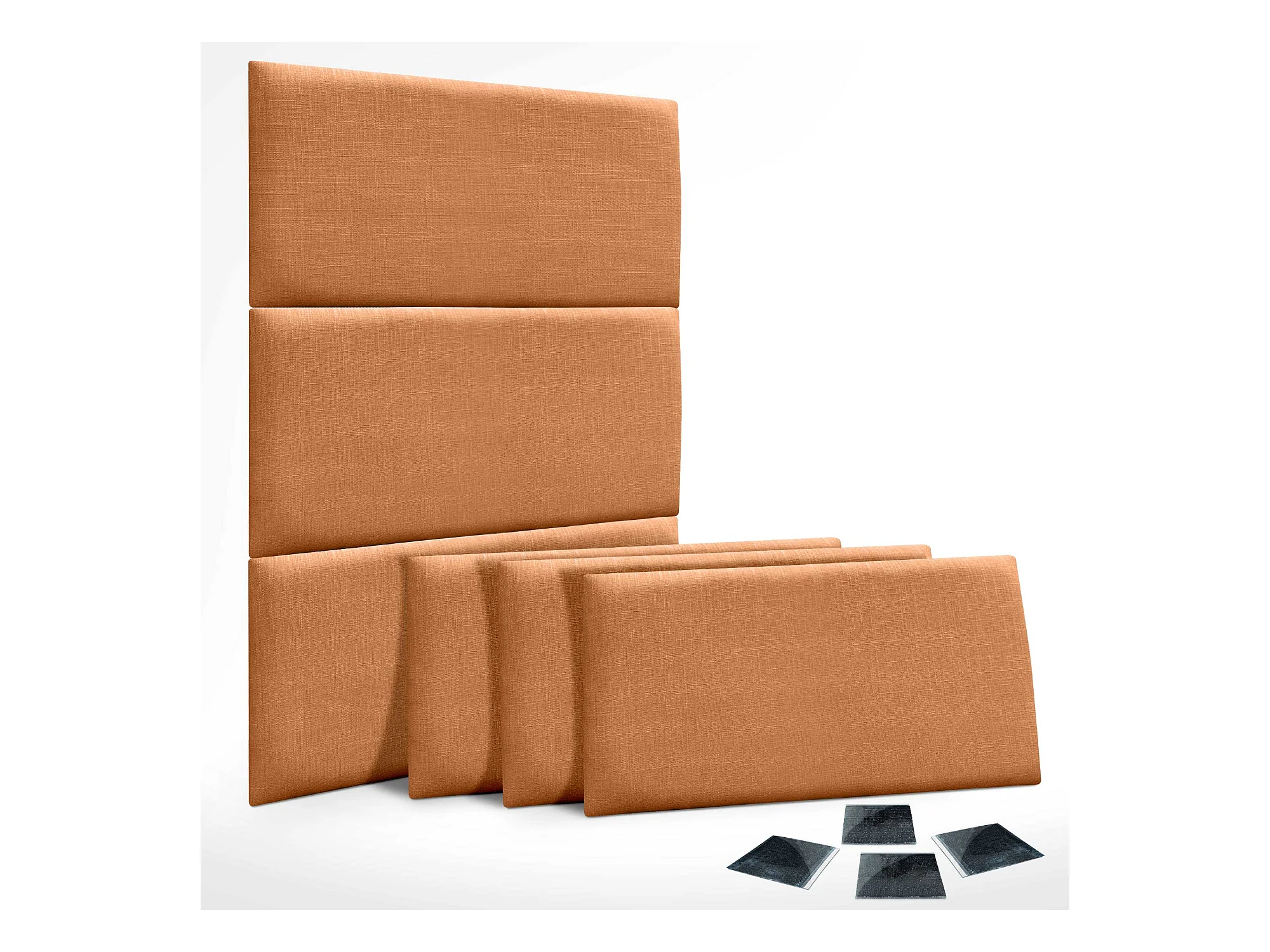 DHOME Ensemble de 6 Panneaux muraux en lin autocollants, absorption acoustique, protection contre les chocs et Têtes de Lit (Orange, 60x50cm, x6)