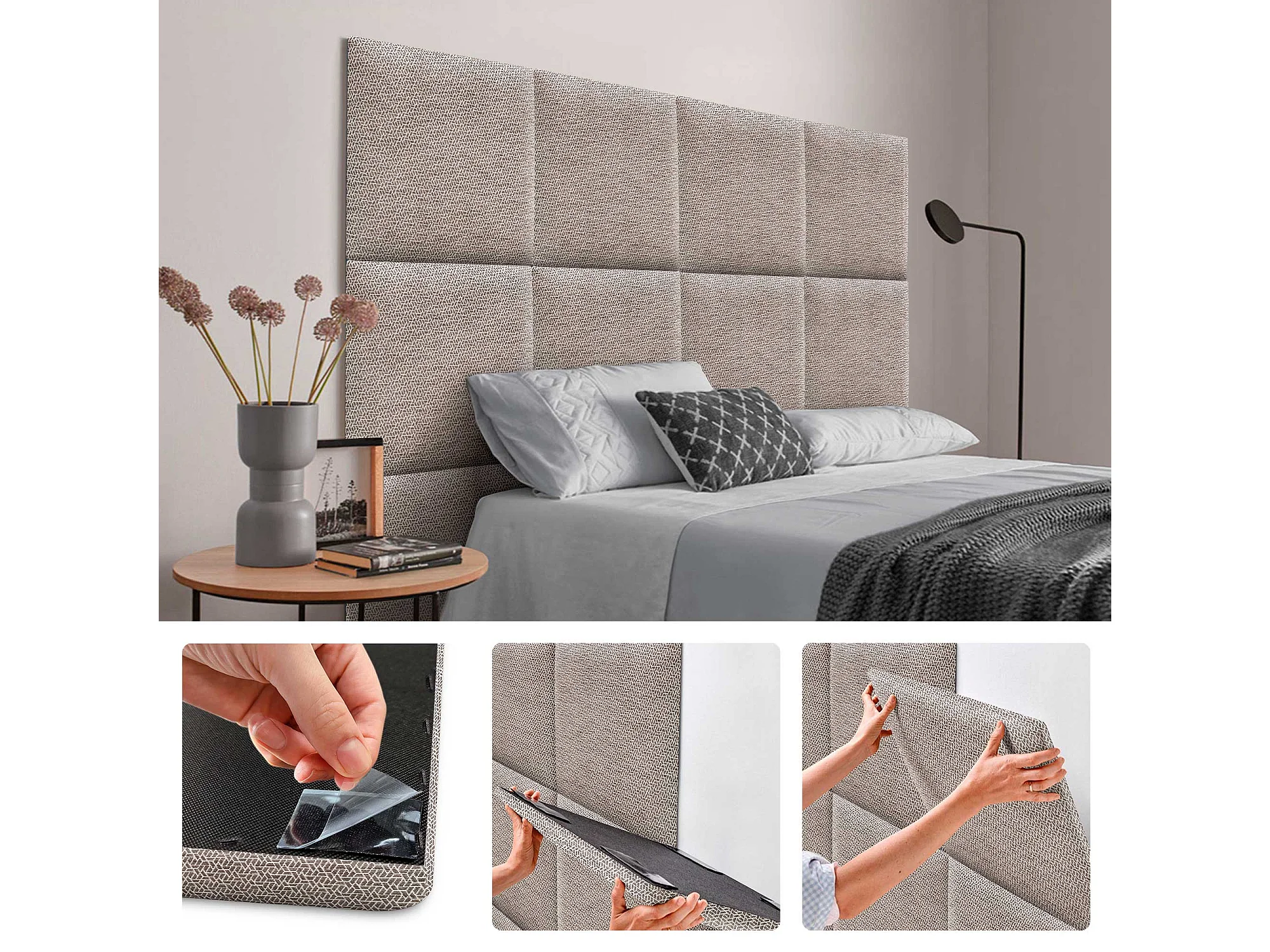 DHOME Ensemble de 6 Panneaux Tapissés en Tissu de Luxe Pack Autoadhésif pour Mur Acoustique Absorbant et Protecteur (Ethnic Brown, 50x30cm, x6)