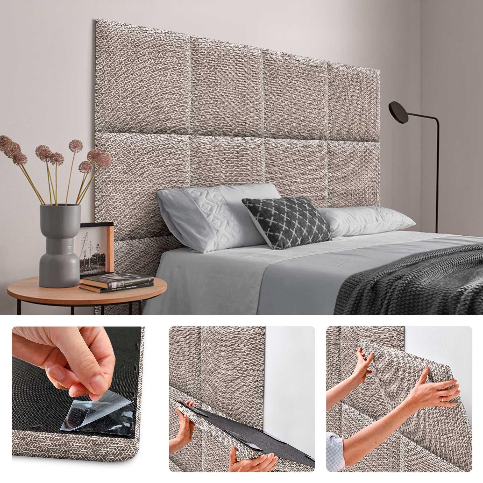 DHOME Ensemble de 8 Panneaux muraux en lin autocollants, absorption acoustique, protection contre les chocs et Têtes de Lit (Terre, 50x50cm, x8)