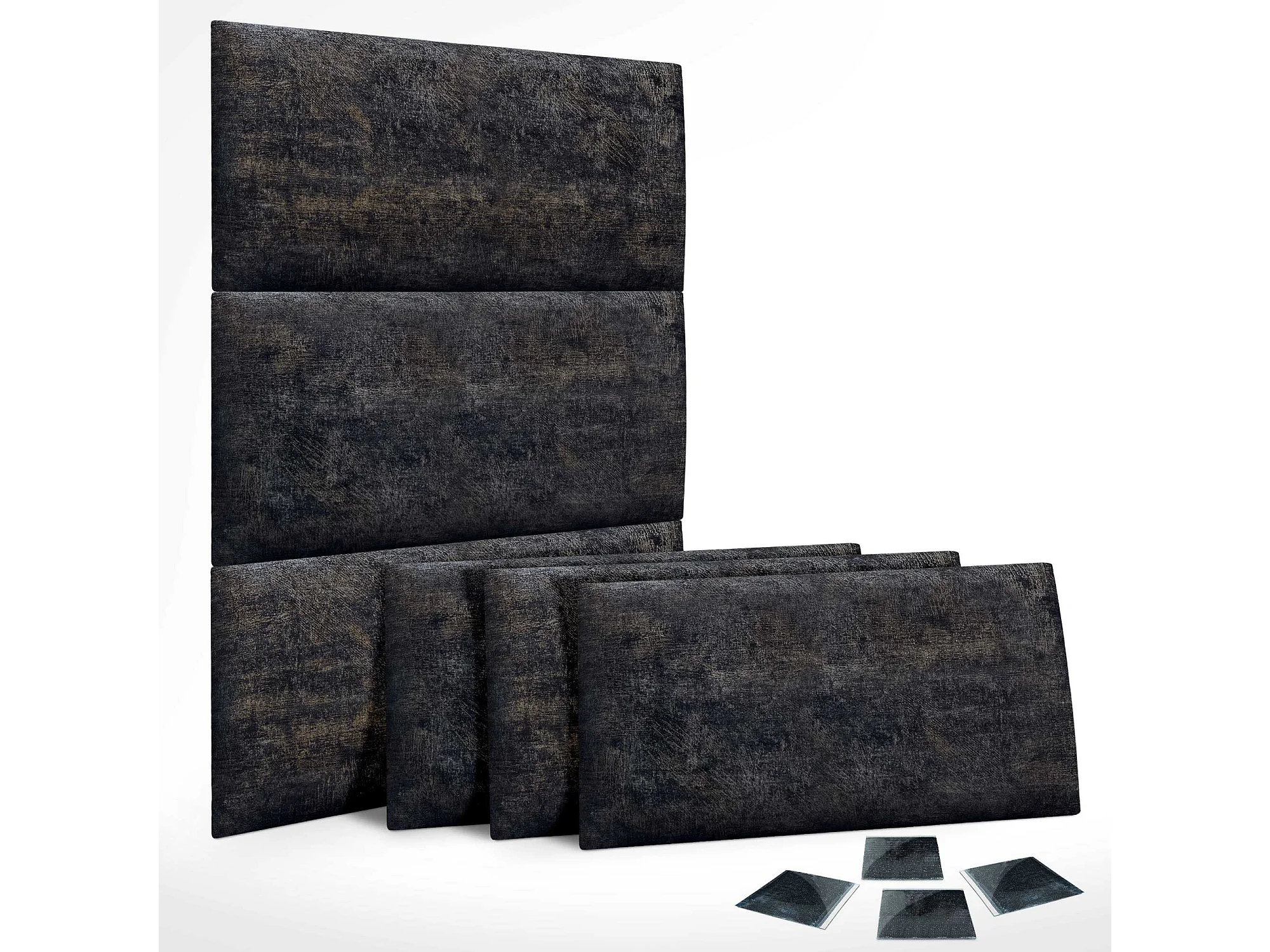 DHOME Ensemble de 6 Panneaux Tapissés en Tissu de Luxe Pack Autoadhésif pour Mur Acoustique Absorbant et Protecteur (Luxurious Black, 60x50cm, x6)
