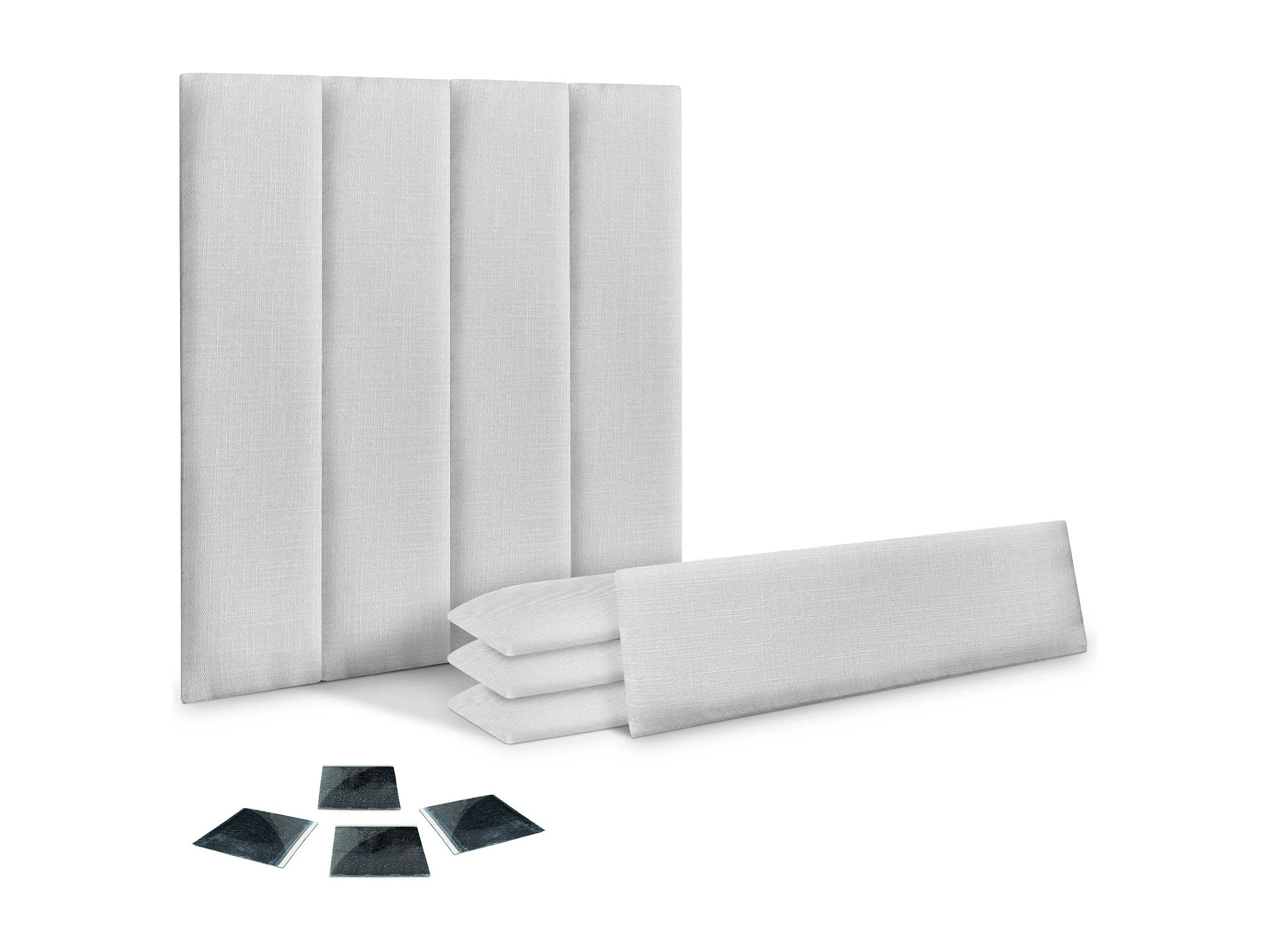DHOME Ensemble de 8 Panneaux muraux en lin autocollants, absorption acoustique, protection contre les chocs et Têtes de Lit (Blanc, 60x20cm, x8)