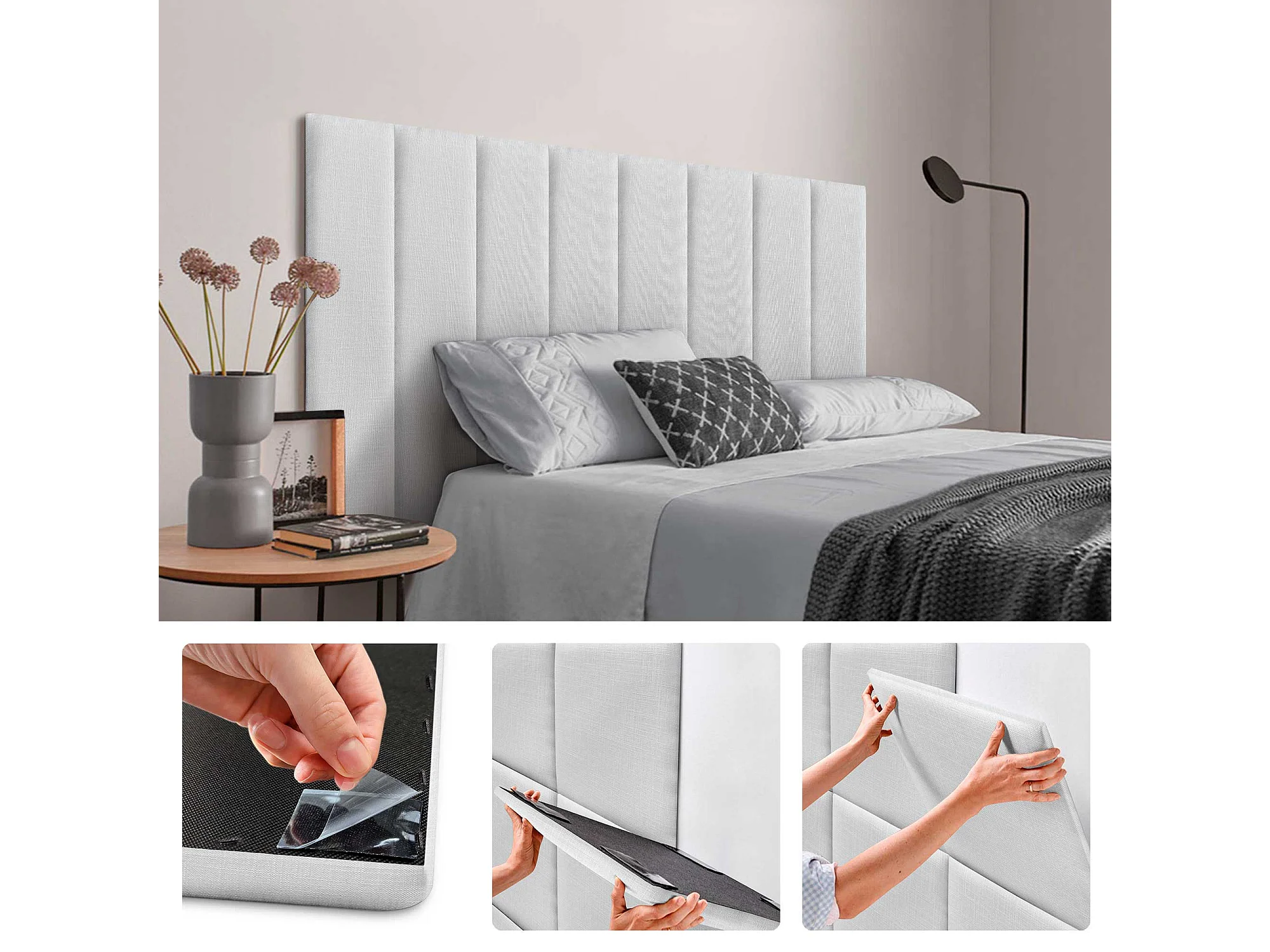 DHOME Tête de lit capitonnée en lin naturel composée de panneaux autocollants interchangeables pour chambre de luxe rembourrée (blanc, 200 cm)