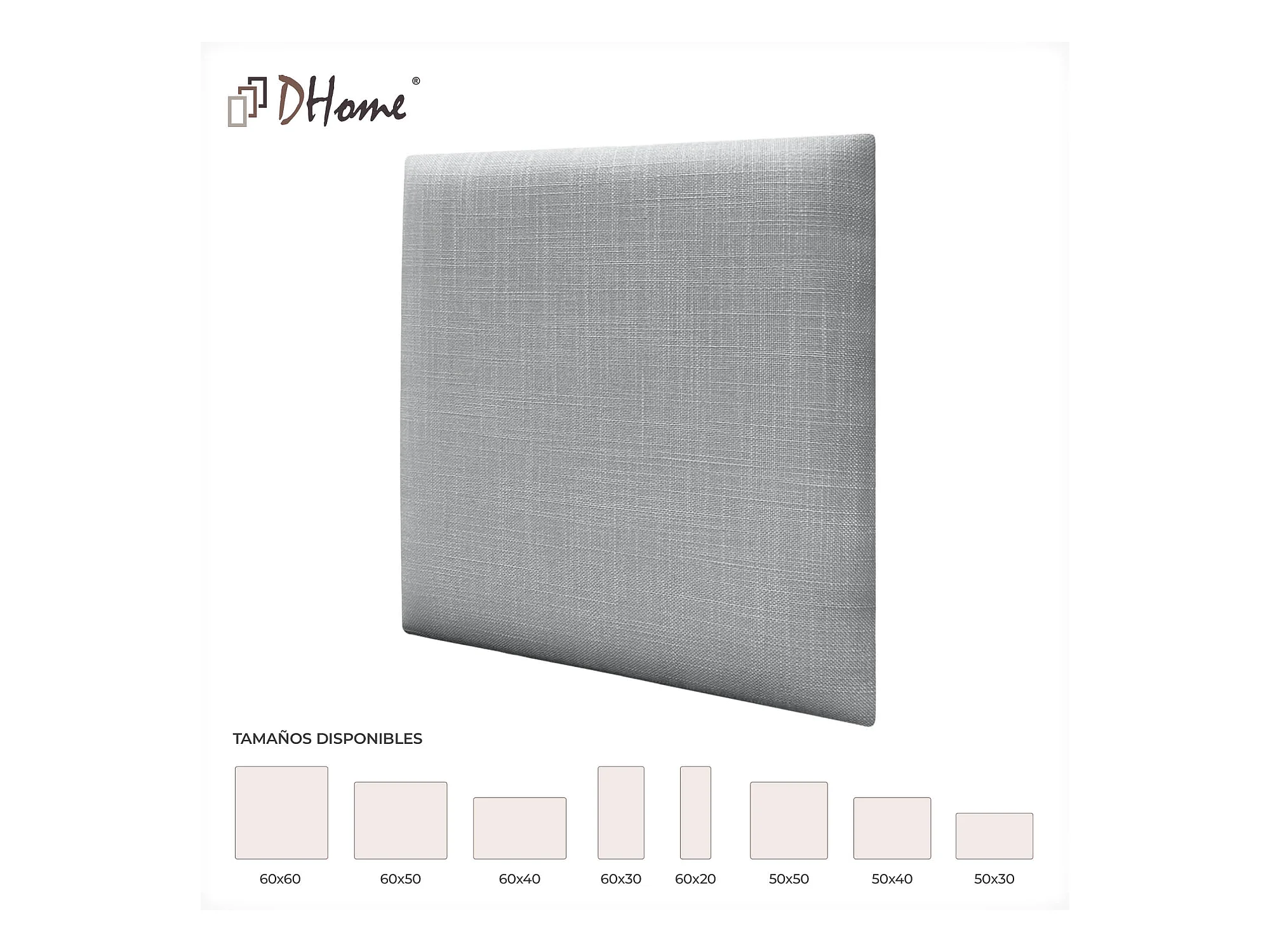 DHOME Ensemble de 1 Panneaux Tapissés en Tissu de Luxe Pack Autoadhésif pour Mur Acoustique Absorbant et Protecteur (Silver Ebony, 60x40cm, x1)