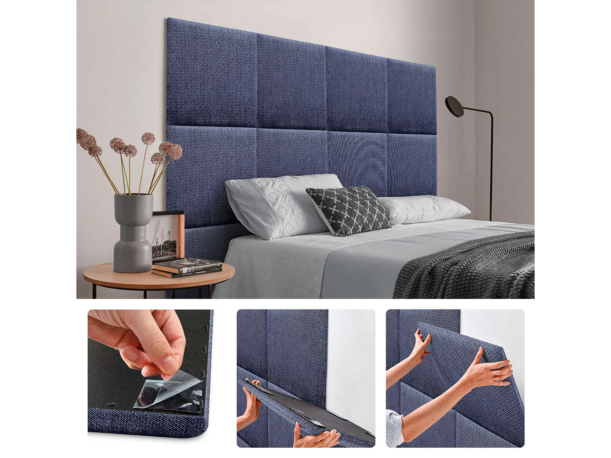 DHOME Panneaux Tapissés en Lin Autoadhésifs pour Mur Acoustiques Absorbants Protection Contre les Impacts Têtes de Lit Décoration (bleu, 60x50cm)