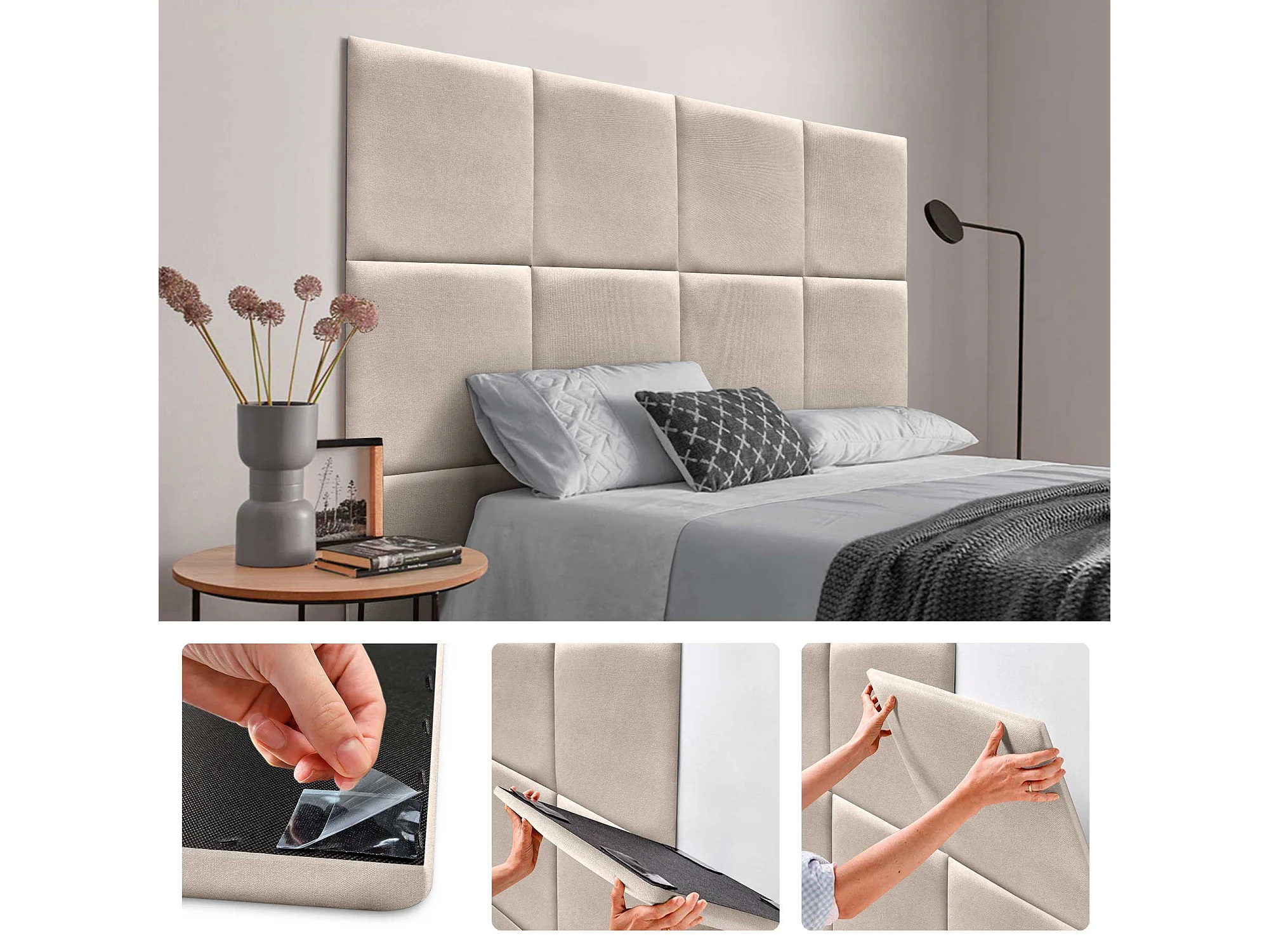 DHOME Lot de 1 Panneaux muraux en tissu auto-adhésifs Panneaux muraux absorbants acoustiques Protection contre les chocs (Beige, 60x60cm, x1)