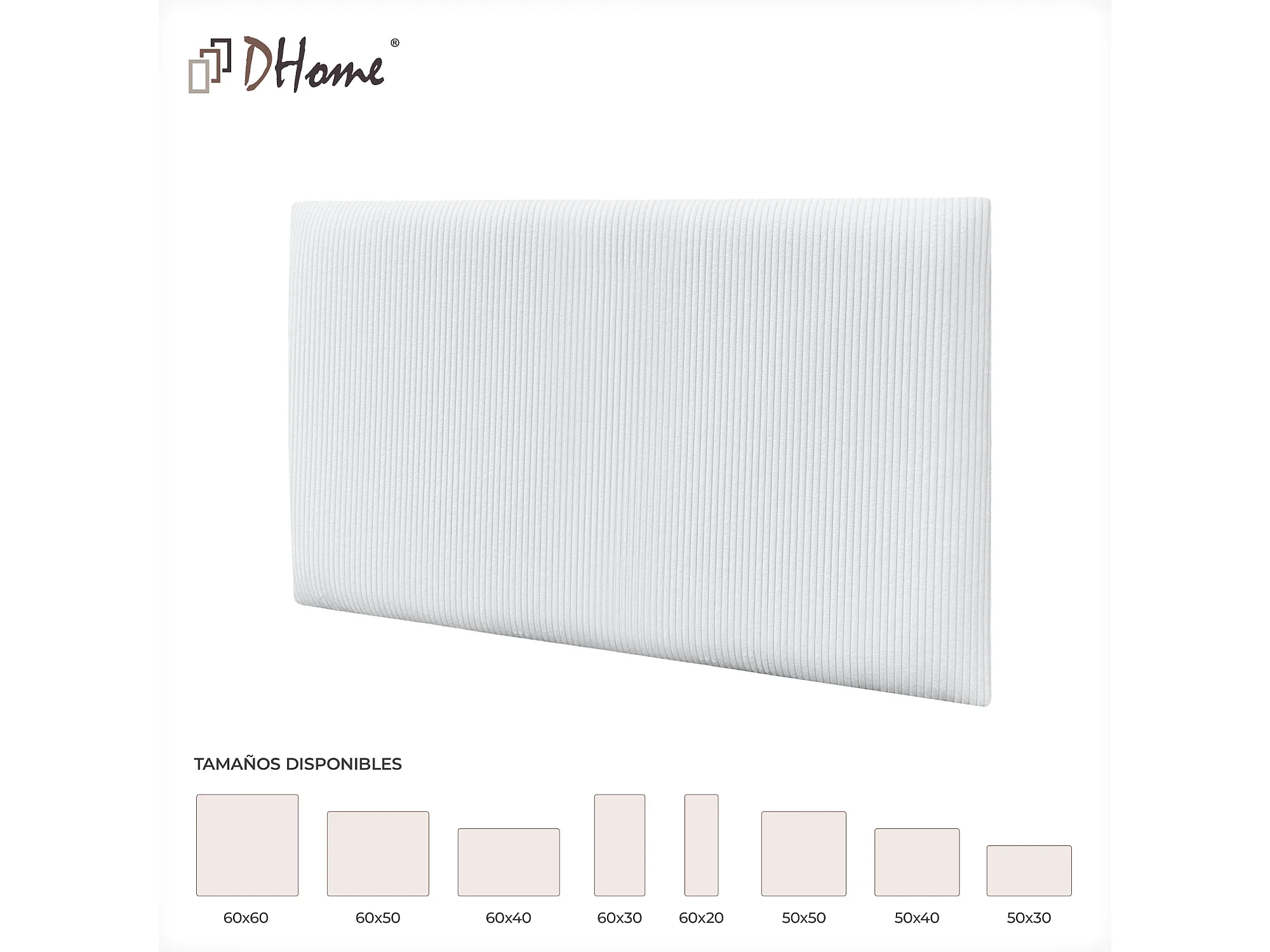 DHOME Lot de 1 Panneau Rembourré en Velours Côtelé Premium Autocollant pour Mur Acoustique Absorbant (Blanc, 60x50cm, x1)