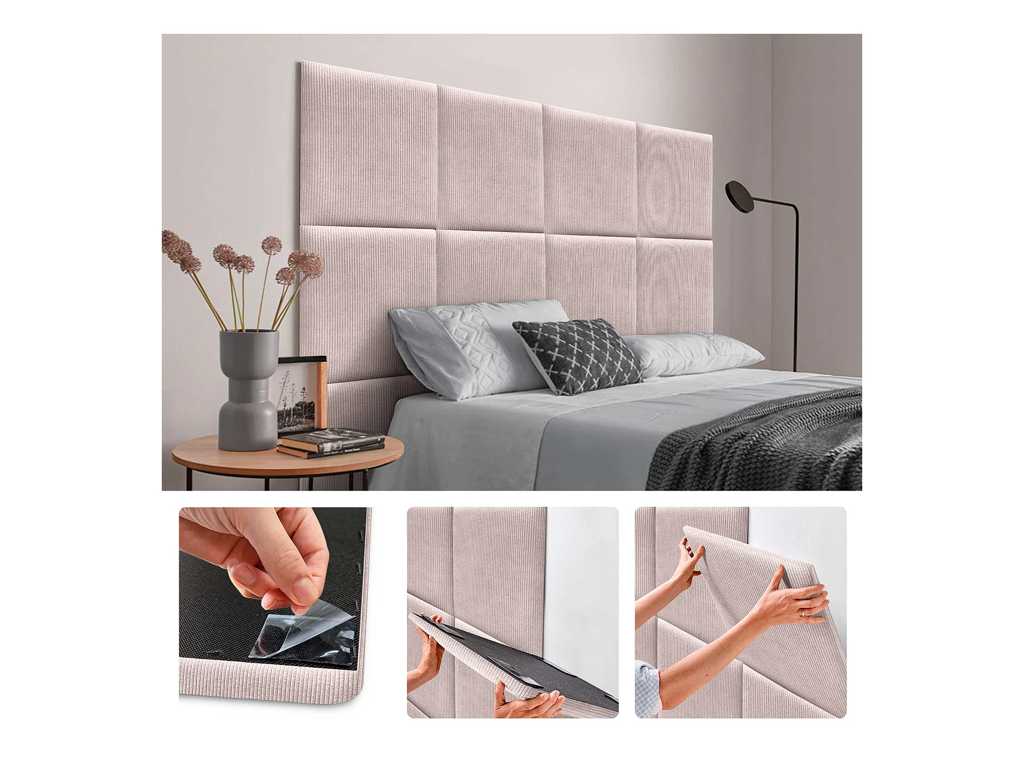 DHOME Lot de 1 Panneau Rembourré en Velours Côtelé Premium Autocollant pour Mur Acoustique Absorbant (Rouse Poudré, 50x50cm, x1)
