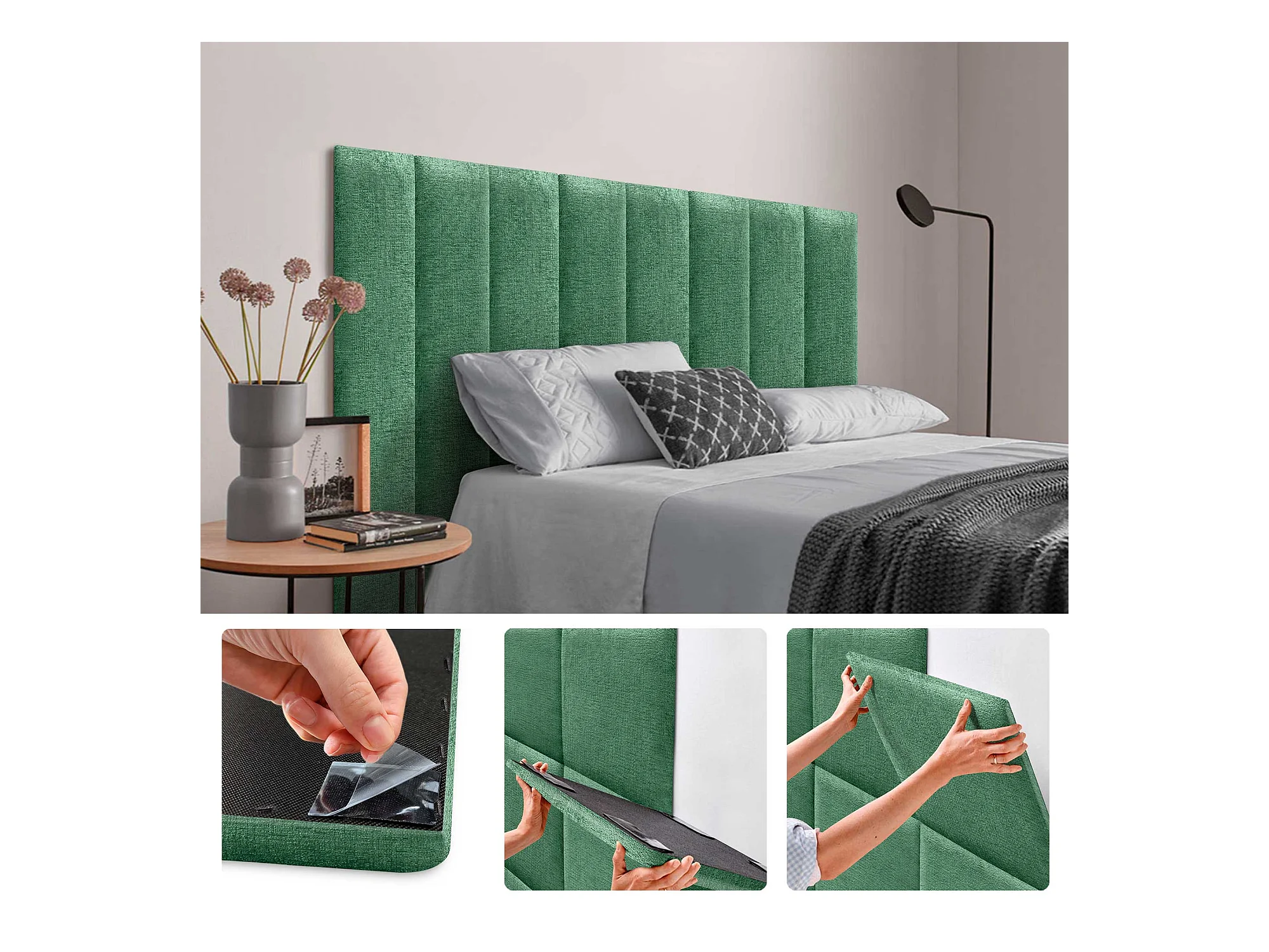 DHOME Tête de Lit Rembourrée en Laine Écologique Composée de Panneaux Autocollants Interchangeables Chambre de Luxe Rembourrée (Vert, 80 cm)