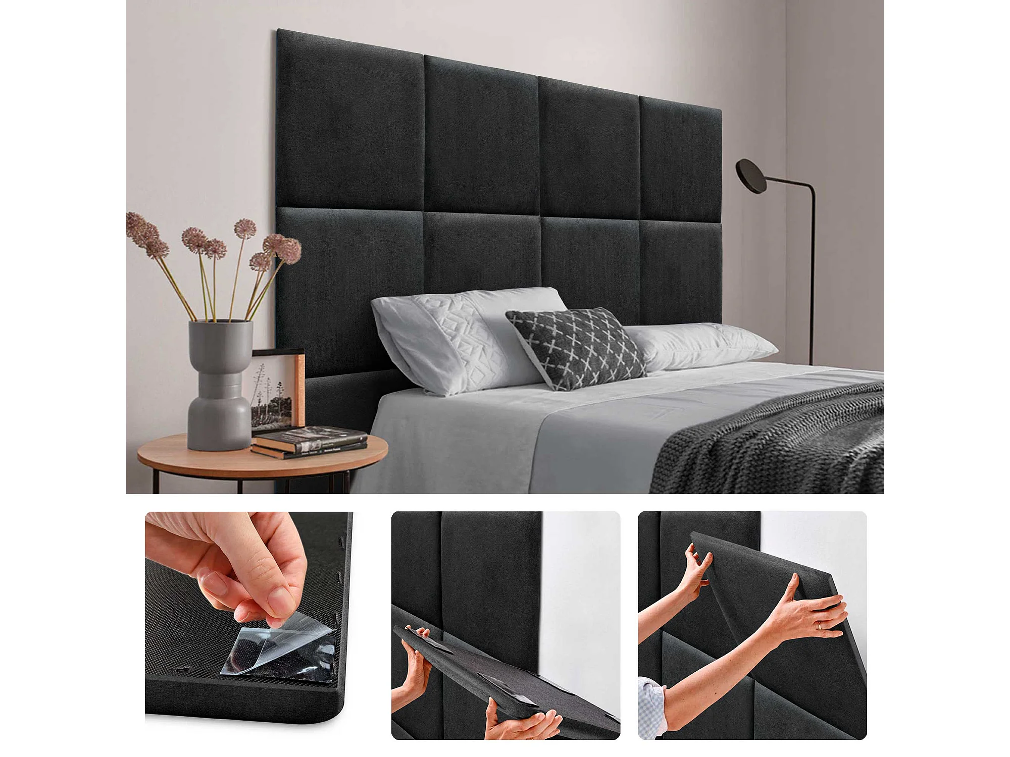 DHOME Lot de 6 Panneaux Rembourrés en Tissu Aqualine Autocollants pour Mur Acoustiques Absorbants Protection contre les Chocs (Noir, 50x50cm, x6)