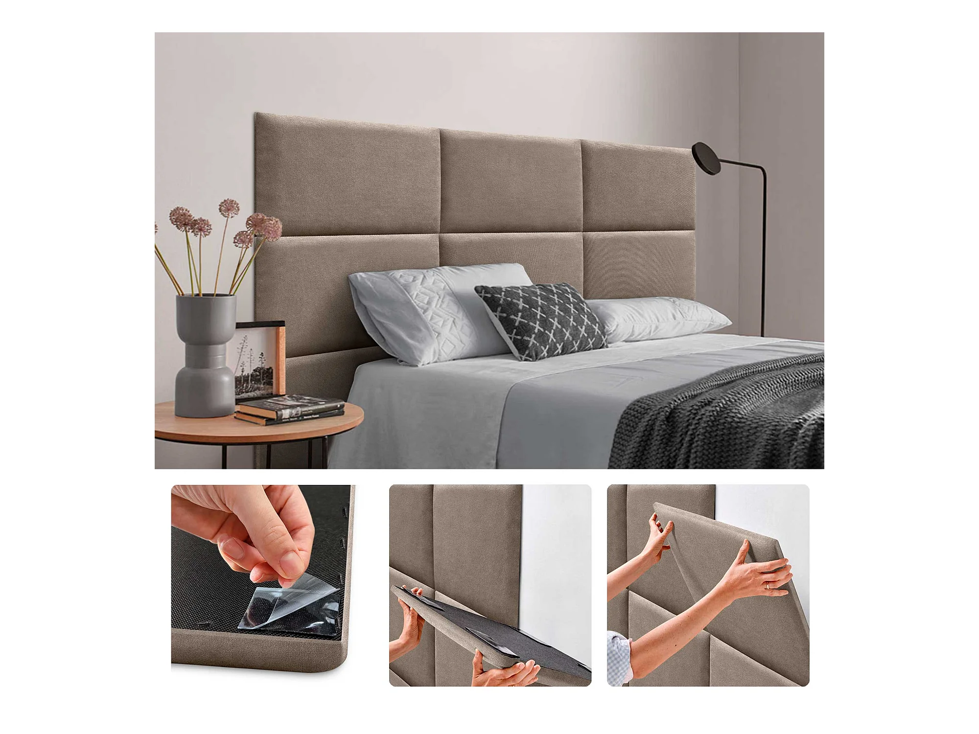 DHOME Ensemble de 8 Panneaux muraux en lin autocollants, absorption acoustique, protection contre les chocs et Têtes de Lit (Terre, 60x50cm, x8)