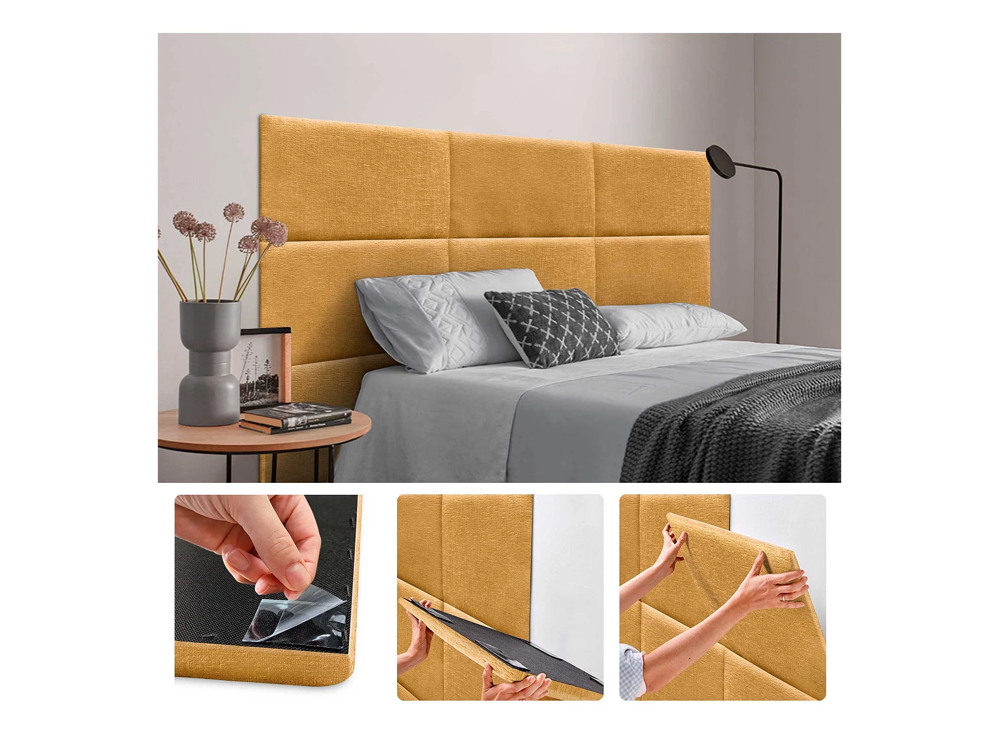DHOME Tête de Lit Rembourrée en Laine Écologique Composée de Panneaux Autocollants Interchangeables Chambre de Luxe Rembourrée (Moutarde, 190 cm)