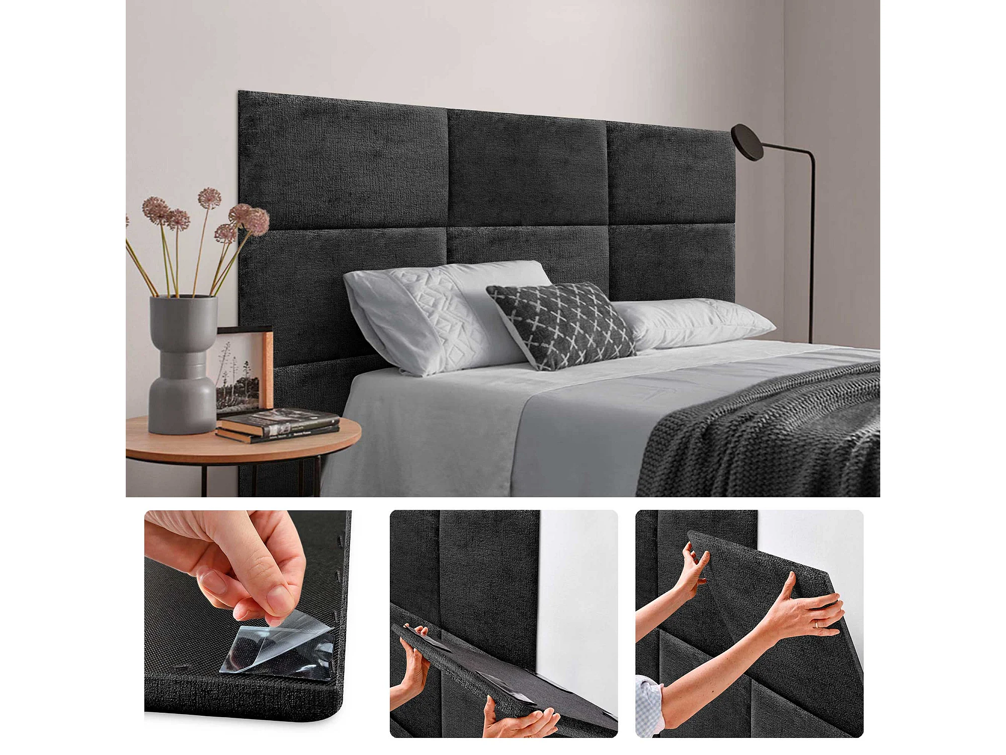 DHOME Lot de 6 panneaux muraux acoustiques auto-adhésifs en laine écologique protection absorbante contre les chocs (Noir, 50 x 40 cm, x6)