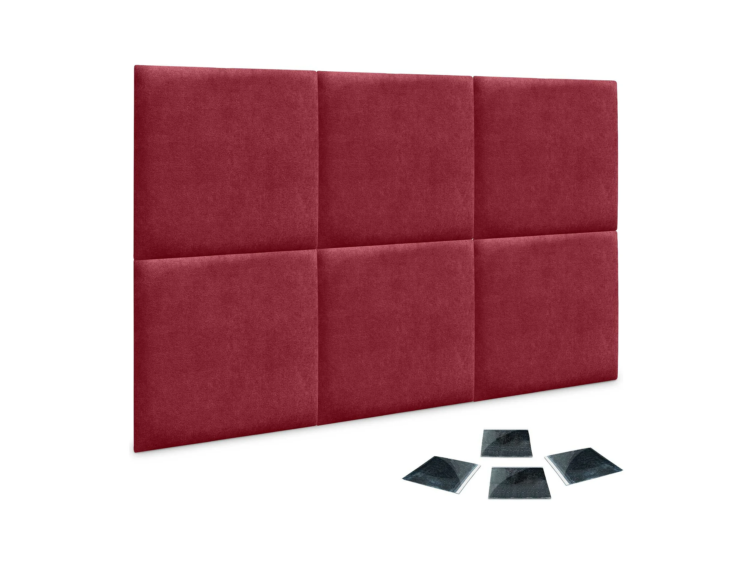 DHOME Lot de 6 Panneaux Rembourrés en Tissu Aqualine Autocollants pour Mur Acoustiques Absorbants Protection contre les Chocs (Rouge, 60x60cm, x6)