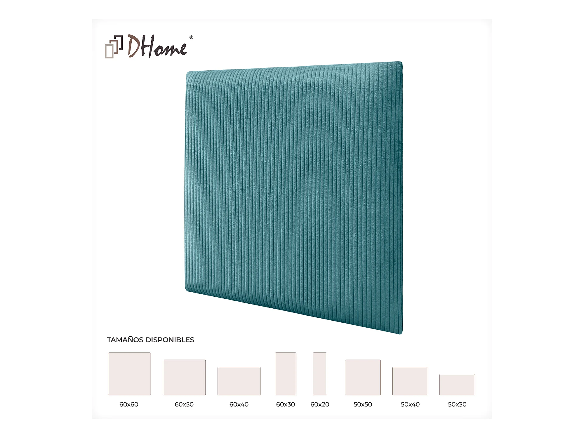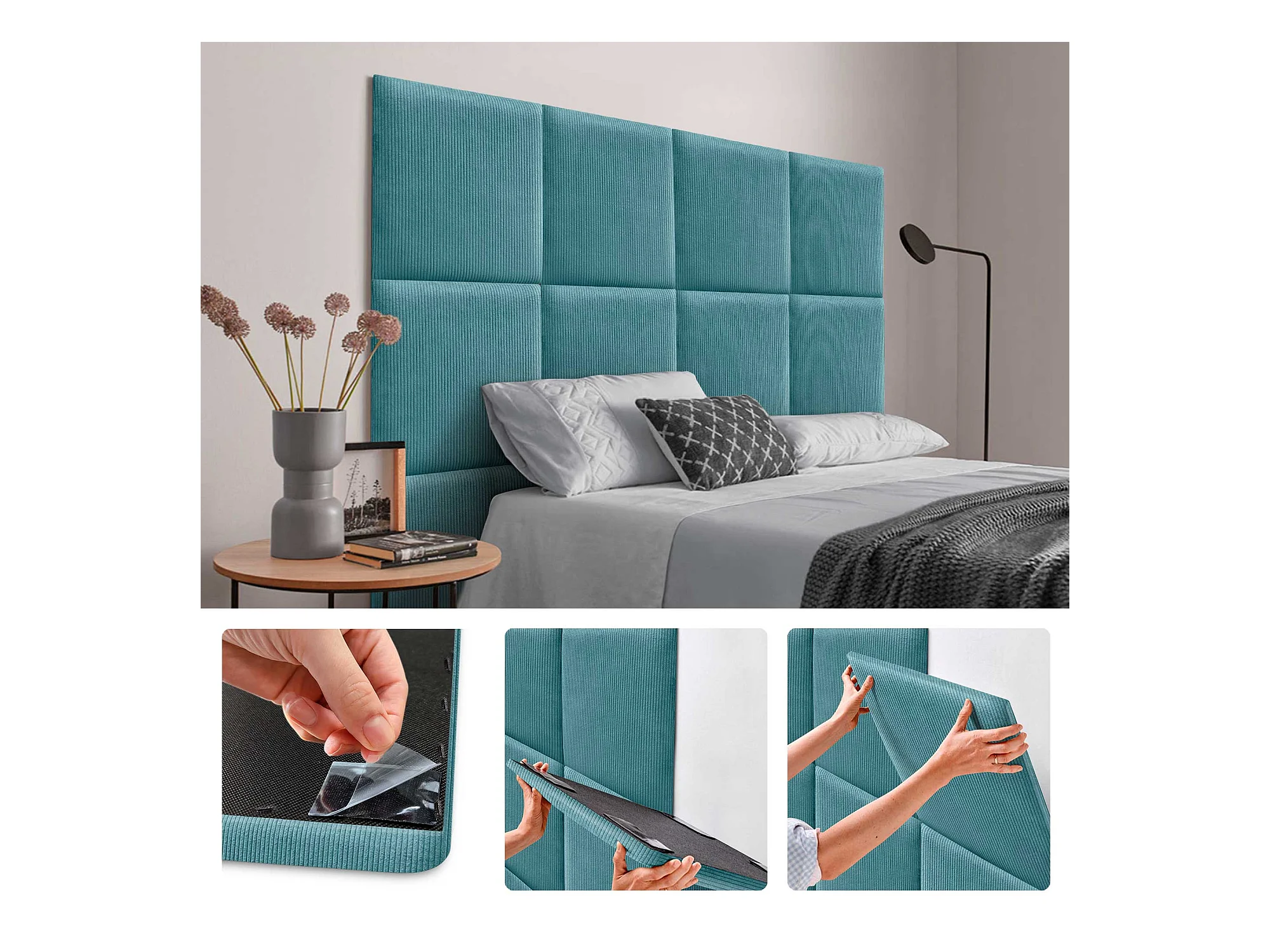 DHOME Lot de 6 Panneaux Rembourrés en Velours Côtelé Premium Autocollants pour Mur Acoustiques Absorbants (Turquoise, 50x50cm, x6)