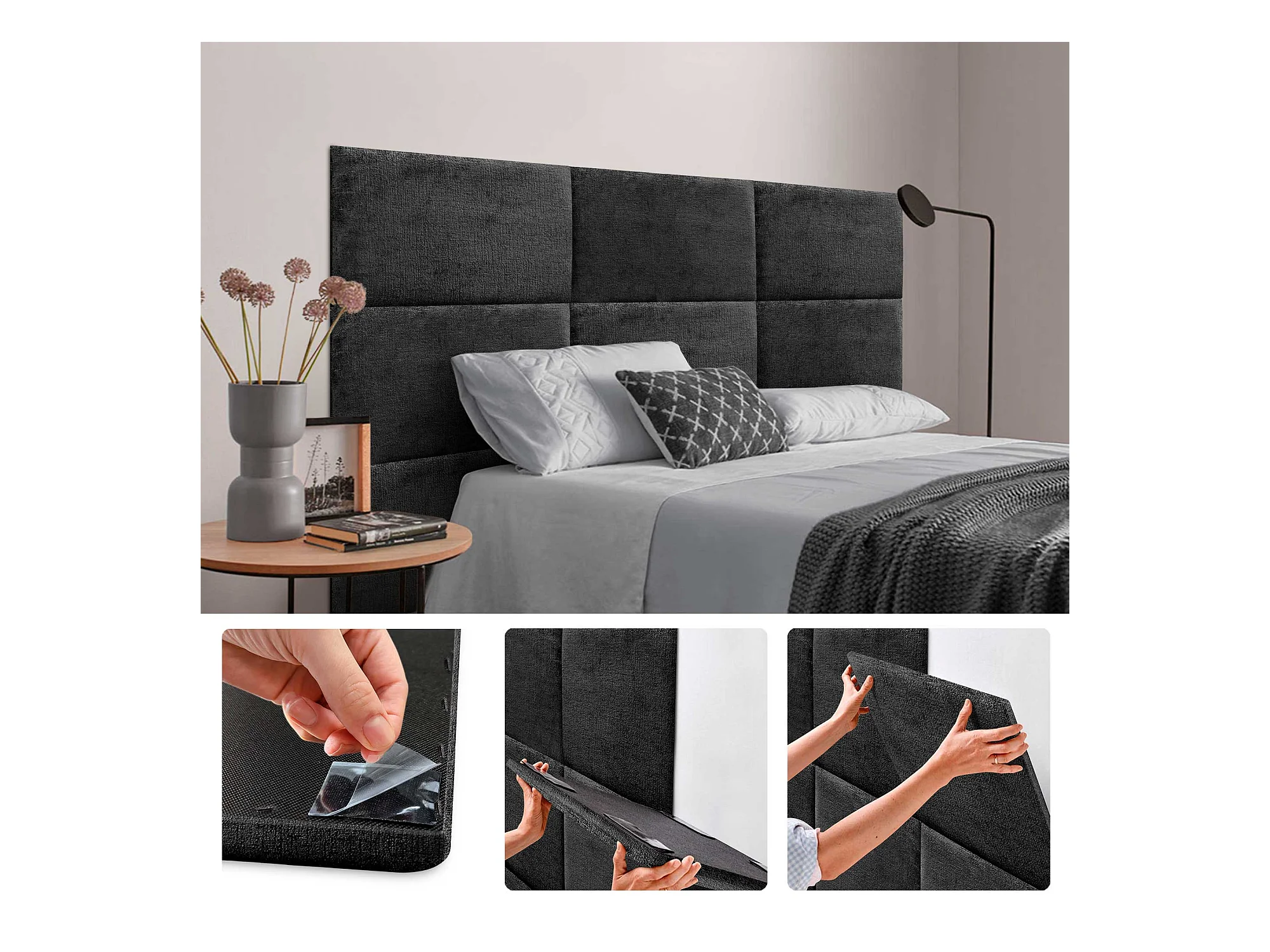 DHOME Tête de Lit Rembourrée en Laine Écologique Composée de Panneaux Autocollants Interchangeables Chambre de Luxe Rembourrée (Noir, 135 cm)