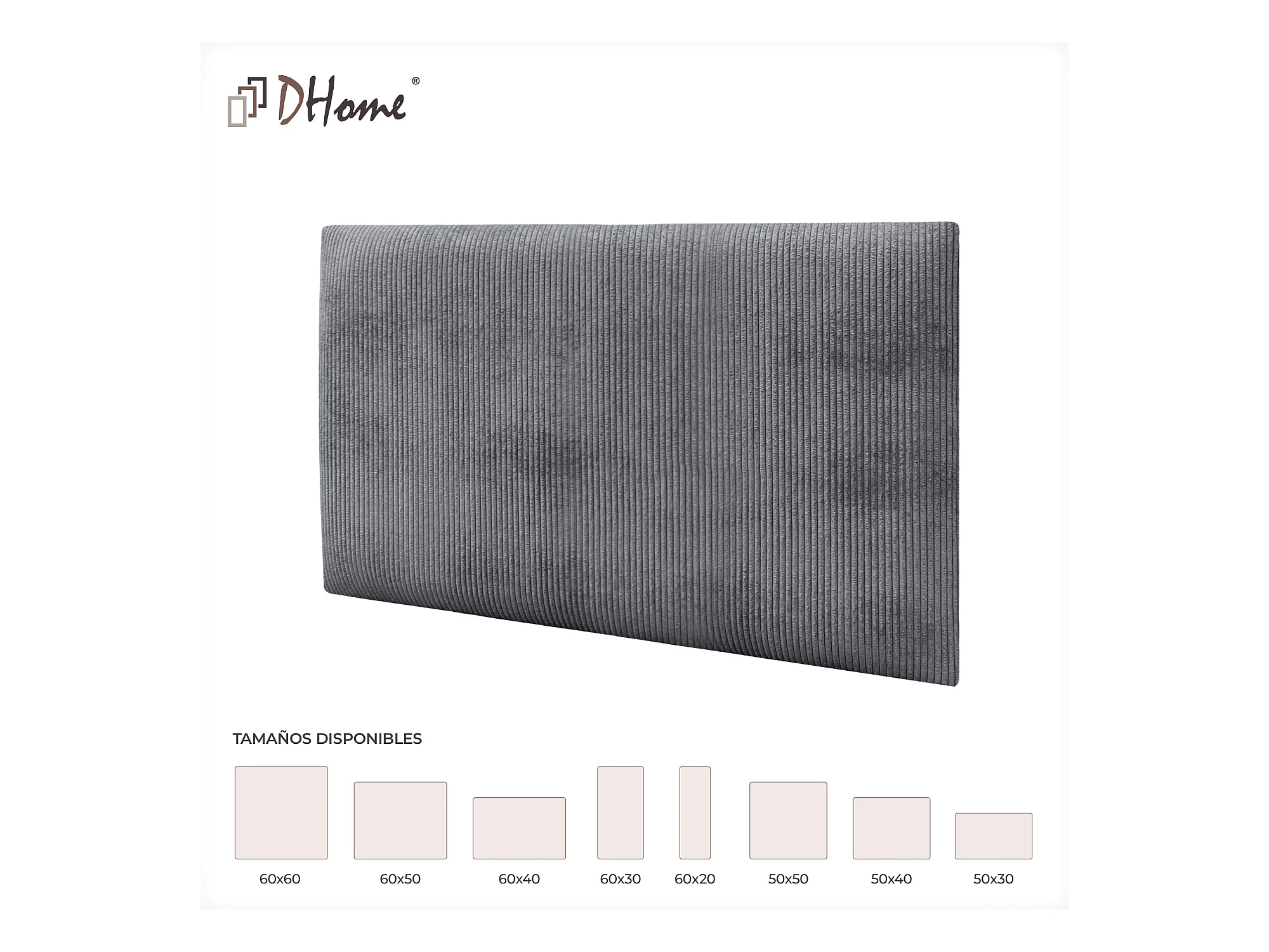 DHOME Panneaux Rembourrés en Velours Premium Autoadhésifs pour Mur Acoustique Absorbant Protection Contre les Chocs, Tete de lit (Gris, 50x30cm)