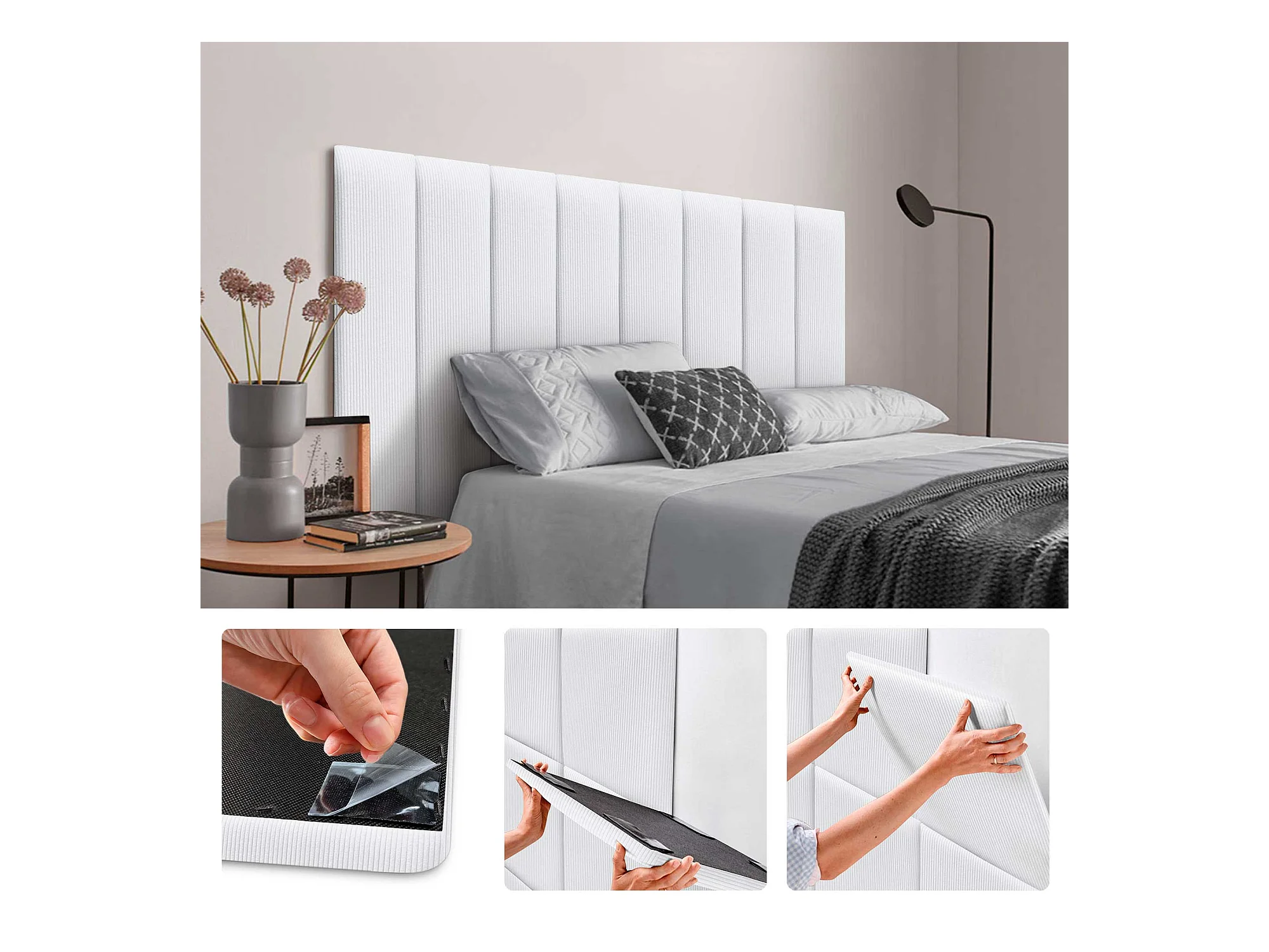 DHOME Panneaux en Velours Premium Autoadhésifs pour Mur Acoustiques Absorbants Protection Contre les Impacts Têtes de Lit (Blanc, 60x20cm)