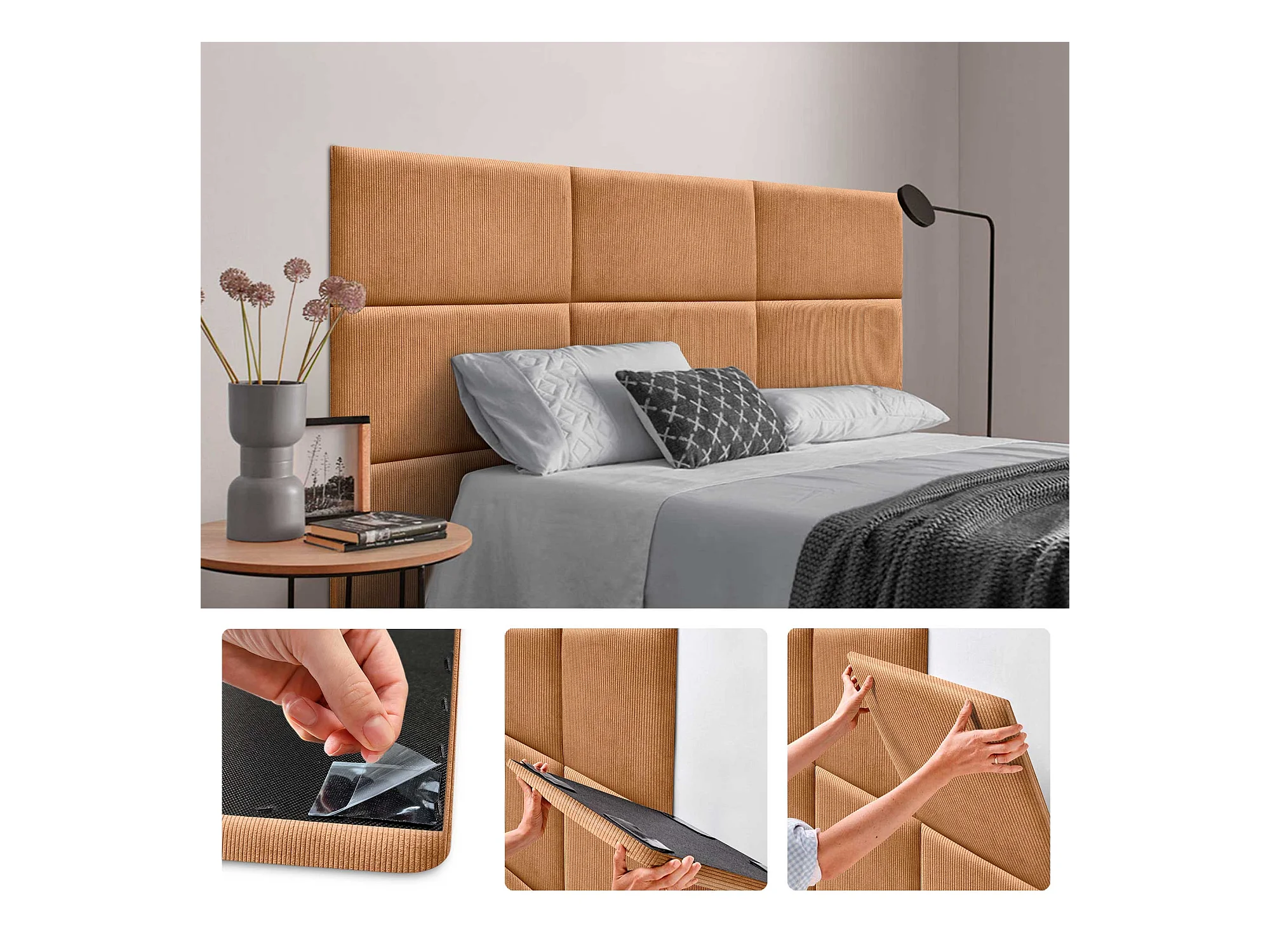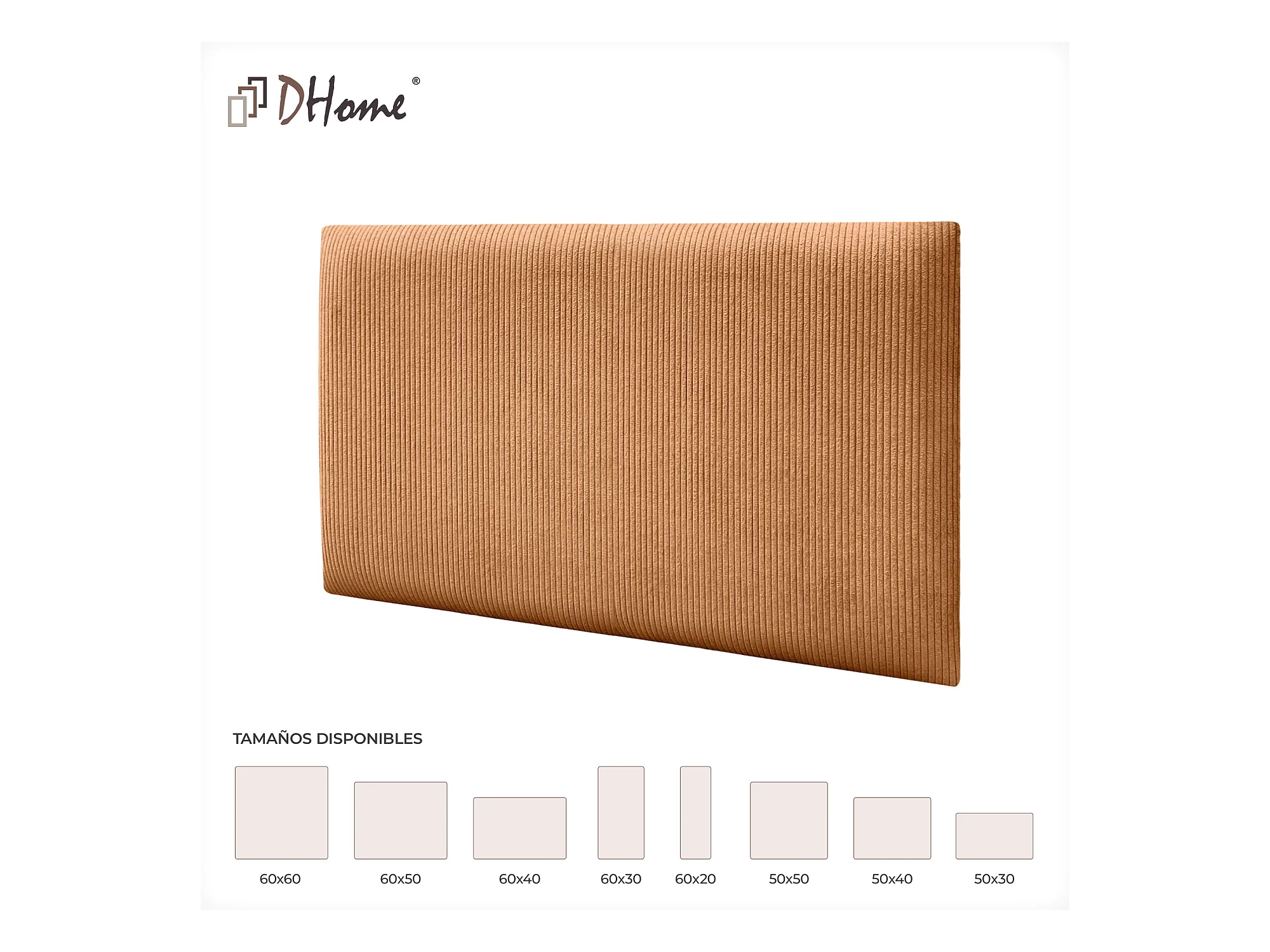 DHOME Lot de 6 Panneaux Rembourrés en Velours Côtelé Premium Autocollants pour Mur Acoustiques Absorbants (Orange, 60x50cm, x6)