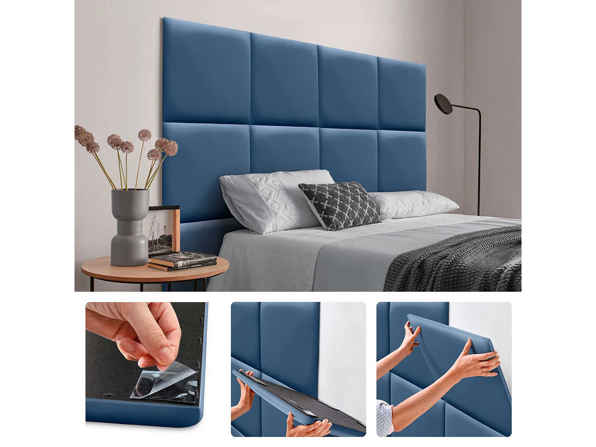 DHOME Panneaux Rembourrés en Similicuir Autocollants pour Mur Acoustiques Absorbants Protection contre les Chocs Têtes de Lit (bleu, 60x60cm)